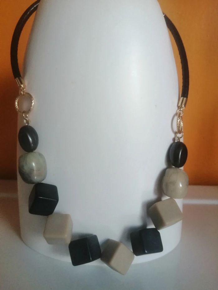 🌸Reçu en cadeau 🌸Très belle qualité, liens en cuir noir, perles carrées noires et beige. Pierres semi précieuses 🌸Longueur détachée 41 cm plus 8 cm de chaînette pour ajuster ✉️ 🇨🇵Envoi suivi postal à 1.65e, me le demander avant l'achat pour modifier 👁️‍🗨️Regardez les autres bijoux pour optimiser vos frais de port #fleurette6767bijoux 👁️‍🗨️ #collierperlescarrees #rasdecouperlescarrées #rasdecoupierressemiprecieuses #collierseventies #seventies #seventys #perlescarreesetpierres #collierpamalussl #colliervintage #collierstylerétro #retrochic #retro70s #seventies #seventys #tendance
