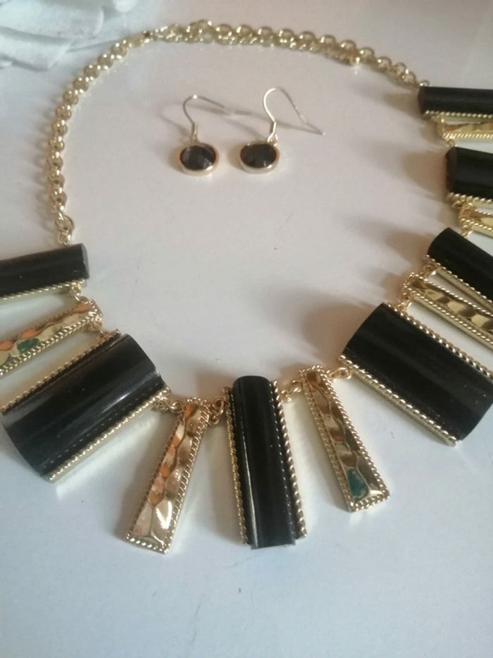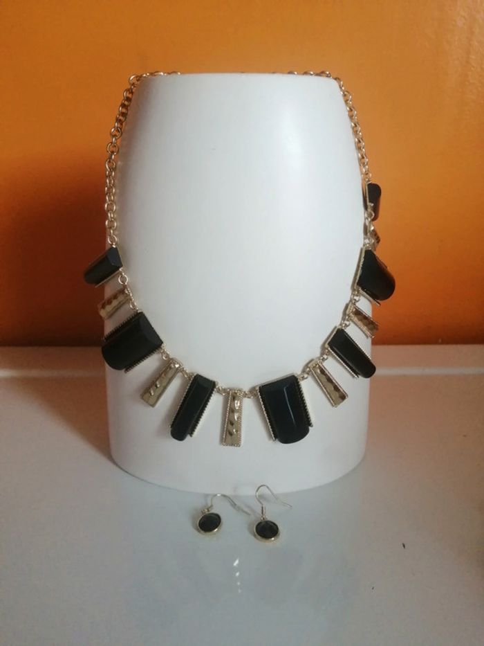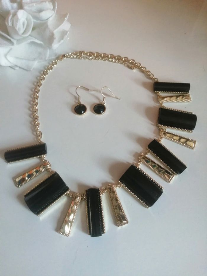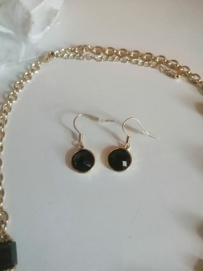 🌸Parure neuve assortie d'un collier et de ses boucles d'oreilles noires 🌸Collier dorée avec pendentif doré et noir assorties à une paire de boucles d'oreilles noires. 🌸Acier doré inoxydable, pierres noires de qualité. 🌸Longueur détachée de 42cm plus 8 cm de chaînette pour ajuster selon votre désir 🌸Longueur des boucles 2cm ✉️Envoi suivi postal à 1.55e 👁️‍🗨️Regardez les autres bijoux pour optimiser vos frais de port #fleurette6767bijoux in #parurebijoux #rasdecou #parurecollieretbouclesdoreilles #papurebijouxacierinoxydable #collierdorenoirneuf #collierchic #collierchaine #colliier42cm #rasdecou42cm #bijouneuf
