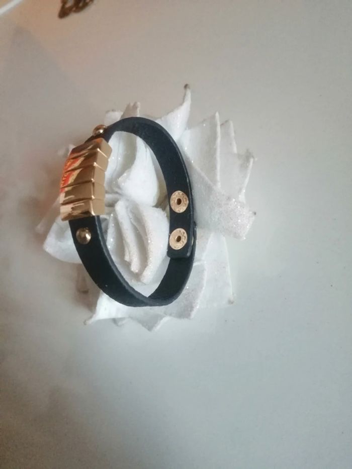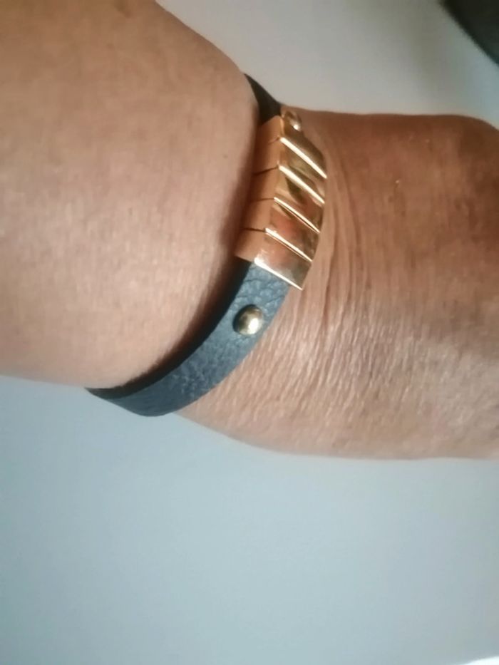 🌸Bracelet cuir manchette bleu et doré Neuf 🌸 - photo numéro 7