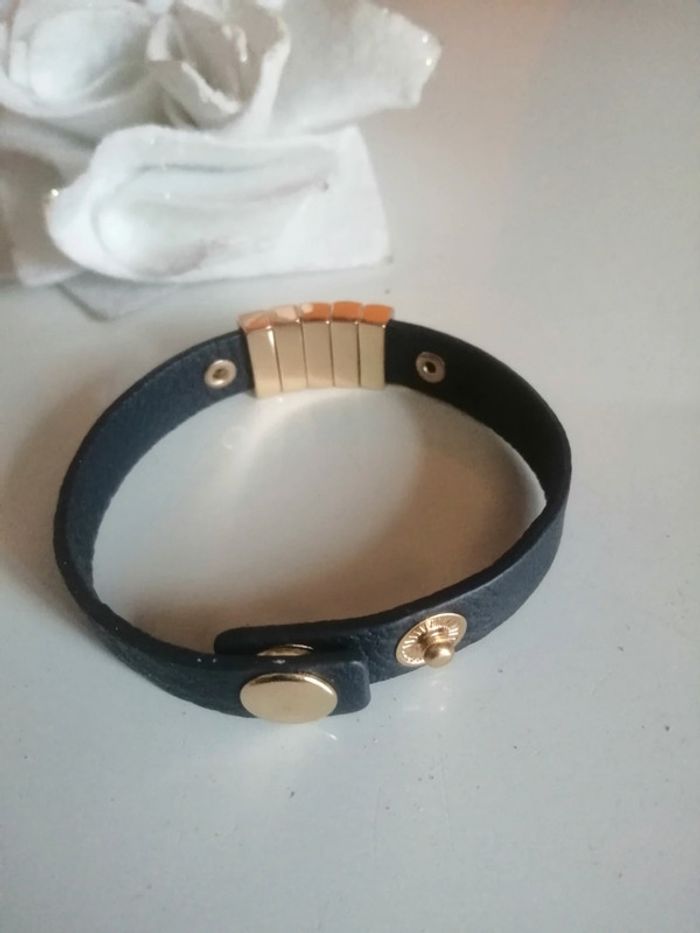 🌸Bracelet cuir manchette bleu et doré Neuf 🌸 - photo numéro 5