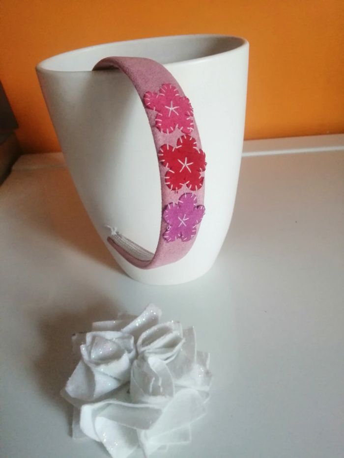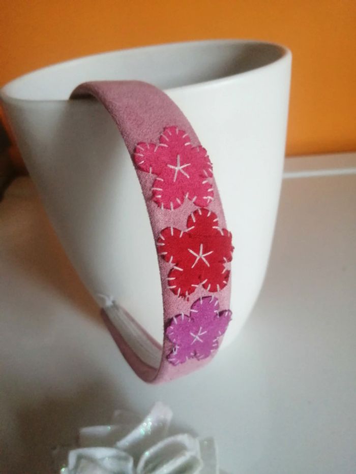 🌸Très bon état 🌸Extérieur velours rose, 3 fleurs 🌸Intérieur avec broderie blanche #fleurette6767accessoireenfant #serretete #serretetefleurs #serreteteveloursrose #serretetefleuri #accessoirescheveux