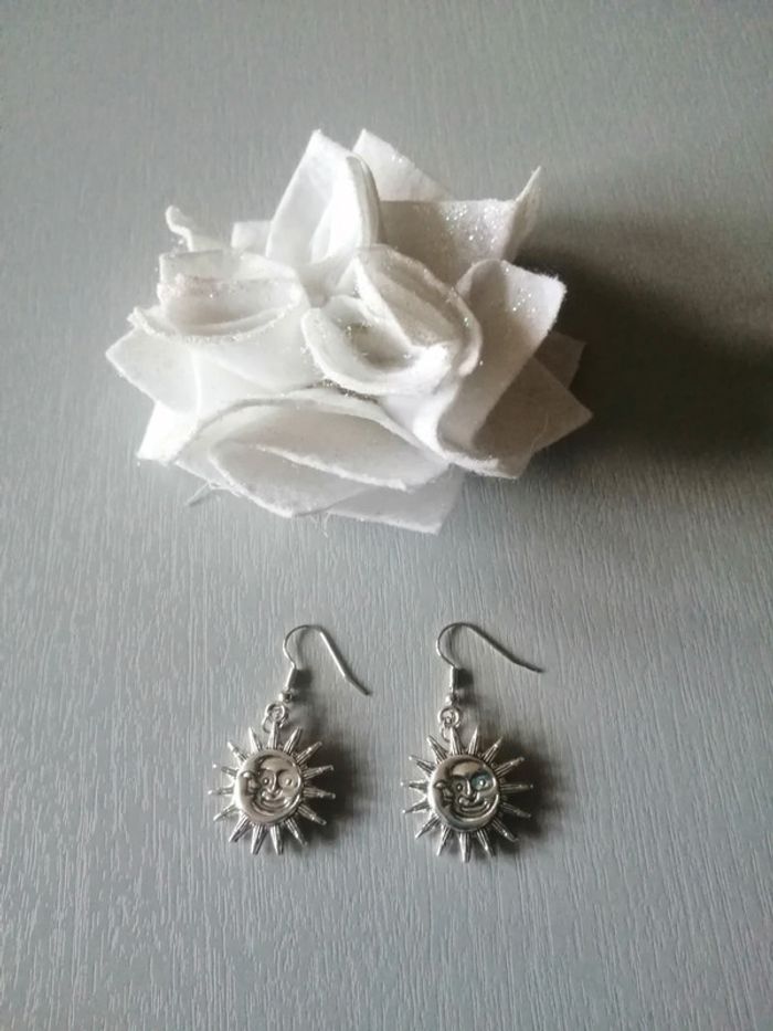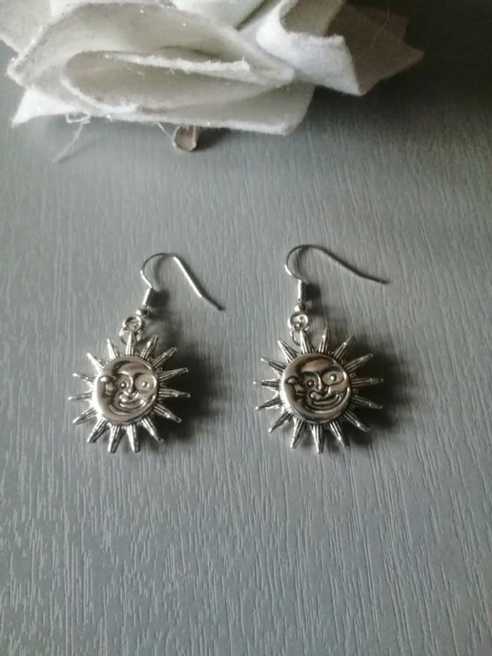 🌸Boucles d'oreilles argentées Sun and Moon Neuves 🌸 - photo numéro 2
