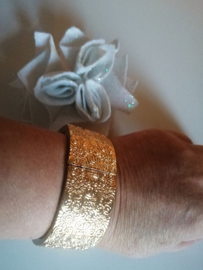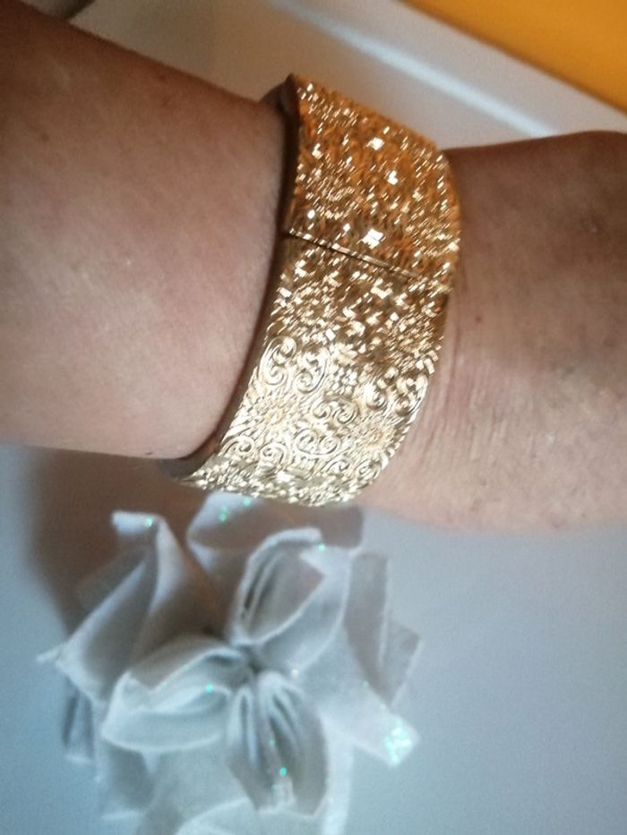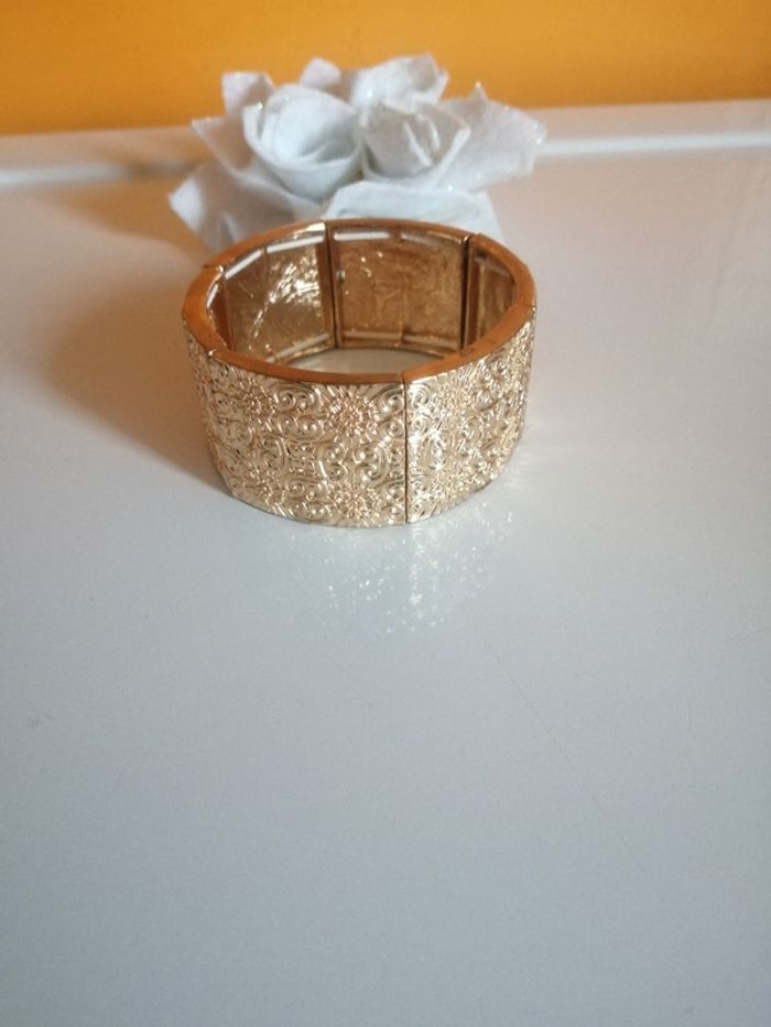 🌸Neuf, très chic et belle qualité 🌸Alliage doré inoxydable 🌸Bracelet monté sur élastique 🌸Largeur 2,8 cm ✉️🇨🇵Envoi suivi postal en France à 1.65 e, me le demander avant l'achat #fleurette6767bijoux #braceletdoreethnic #braceletoriental #braceletmartelé #oriental #bracelerneuf #braceletajustble #sochicbijoux #addictbracelet #braceletsuit #addictsochicbijoux #sochicbijouxsuit