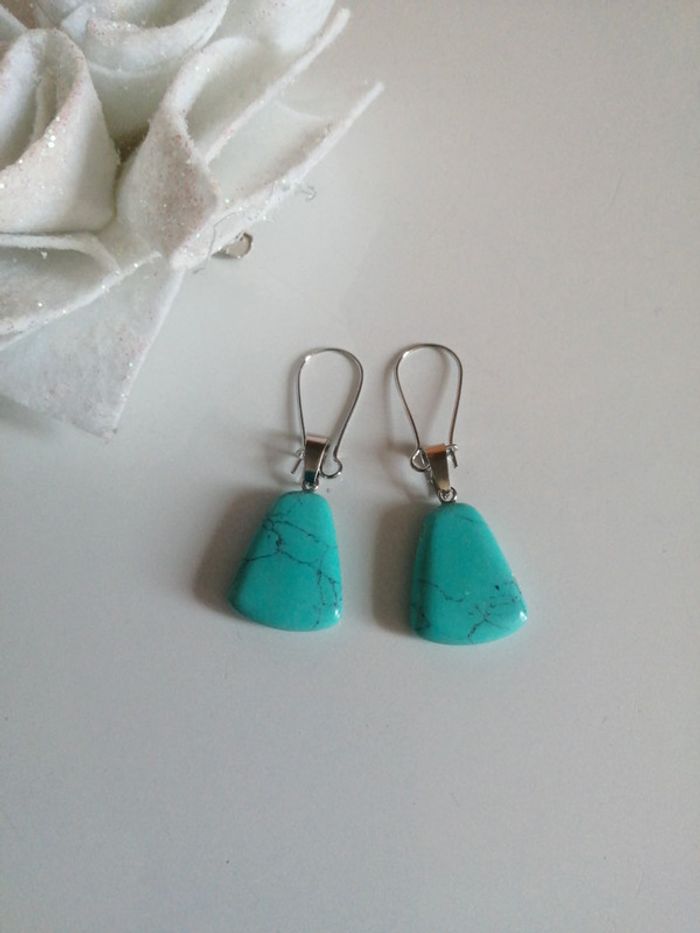 🌸Boucles d'oreilles pendantes argentées et pierre turquoise 🌸 - photo numéro 1