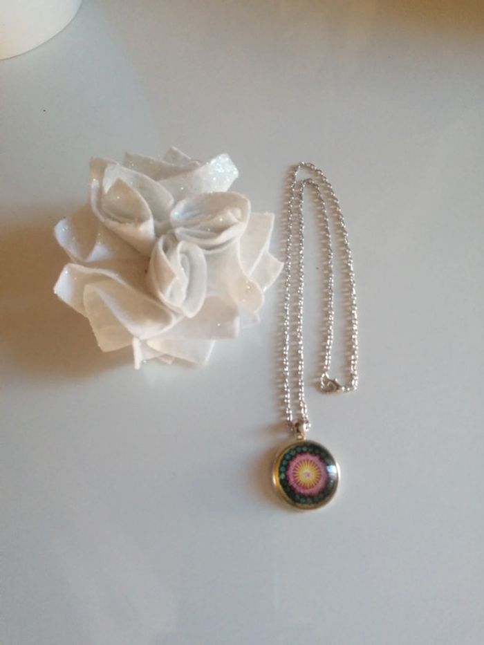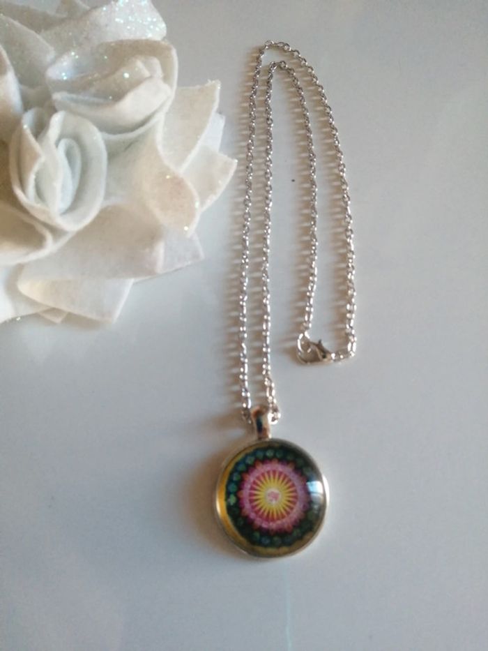 🌸Collier chaîne argenté avec pendentif mandala "edition des fees" 🌸 - photo numéro 1