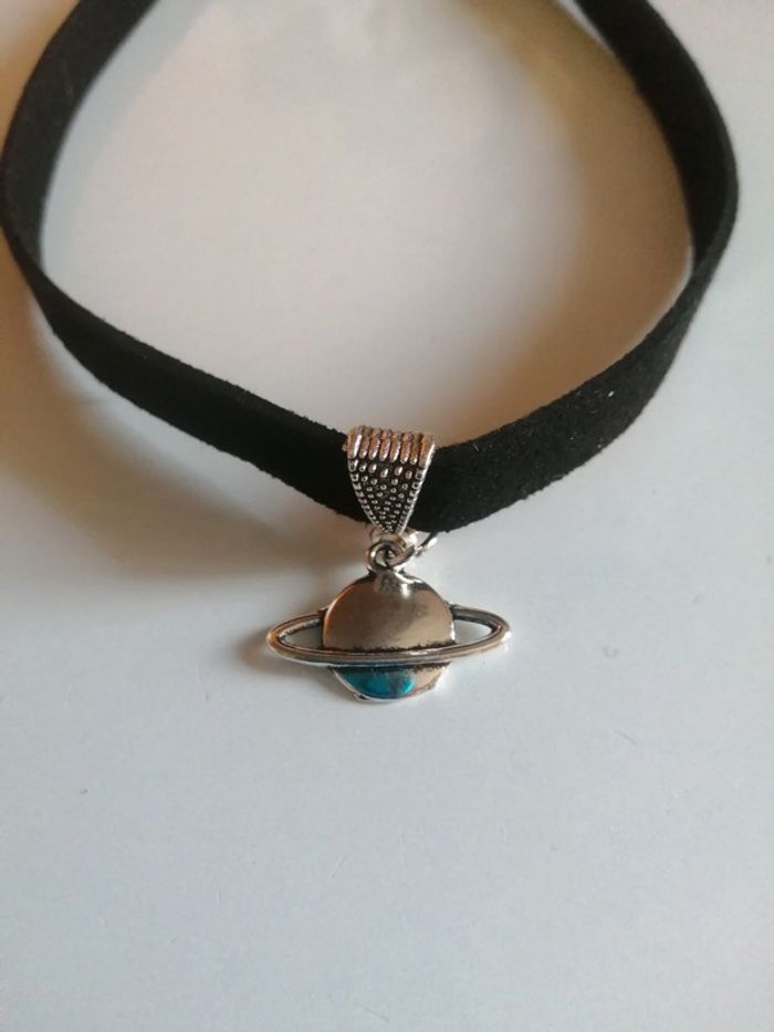 😉Ras de cou velours noir et pendentif planète Neuf 🎲 - photo numéro 2
