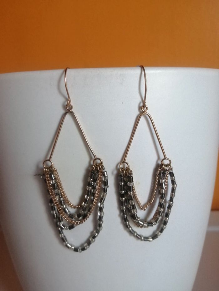 🌸Neuves 🌸Alliage doré inoxydable, perles 🌸Longueur 6 cm 🌸Largeur maxi 3 cm ✉️🇨🇵Envoi suivi postal à 1.65 e, me le demander avant l'achat pour modifier 👁️‍🗨️Regardez les autres bijoux pour optimiser vos frais de port #fleurette6767bijoux👁️‍🗨️ #bijoupimkie #pimkie #bouclesdoreillespendantes #addictpimkie #pimkiesuit #bouclesdoreillesmultichaines