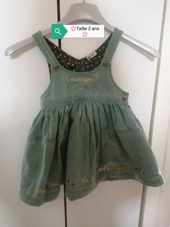 🌸Robe jean vert clair aux broderies d'automne Taille 2 ans 🌸 - photo numéro 1