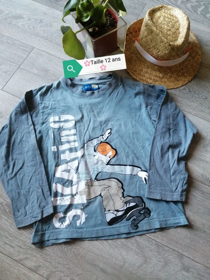 🌸Tee-shirt manche longue bleu/gris skating taille 12 ans "DPAM" 🌸 - photo numéro 1