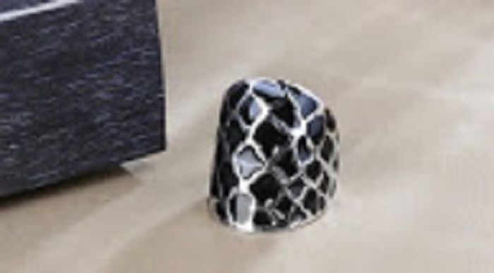 🌸Bague large argentée striée de noir T 60🌸 - photo numéro 1