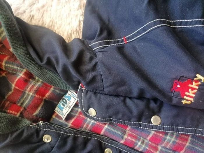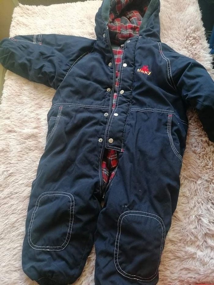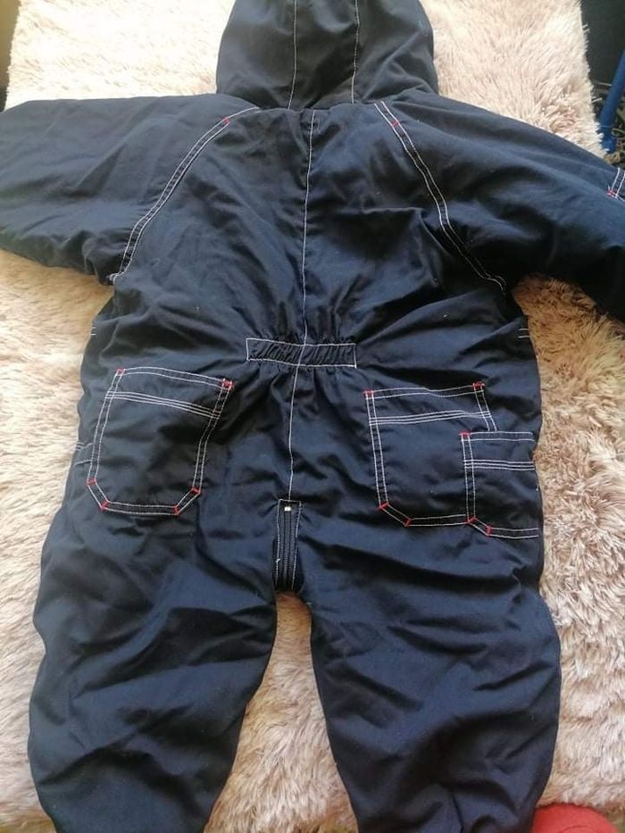 Combinaison chaude de couleur bleu taille 3M bon état à part un petit trait blanc au dos (voir dernière photo).