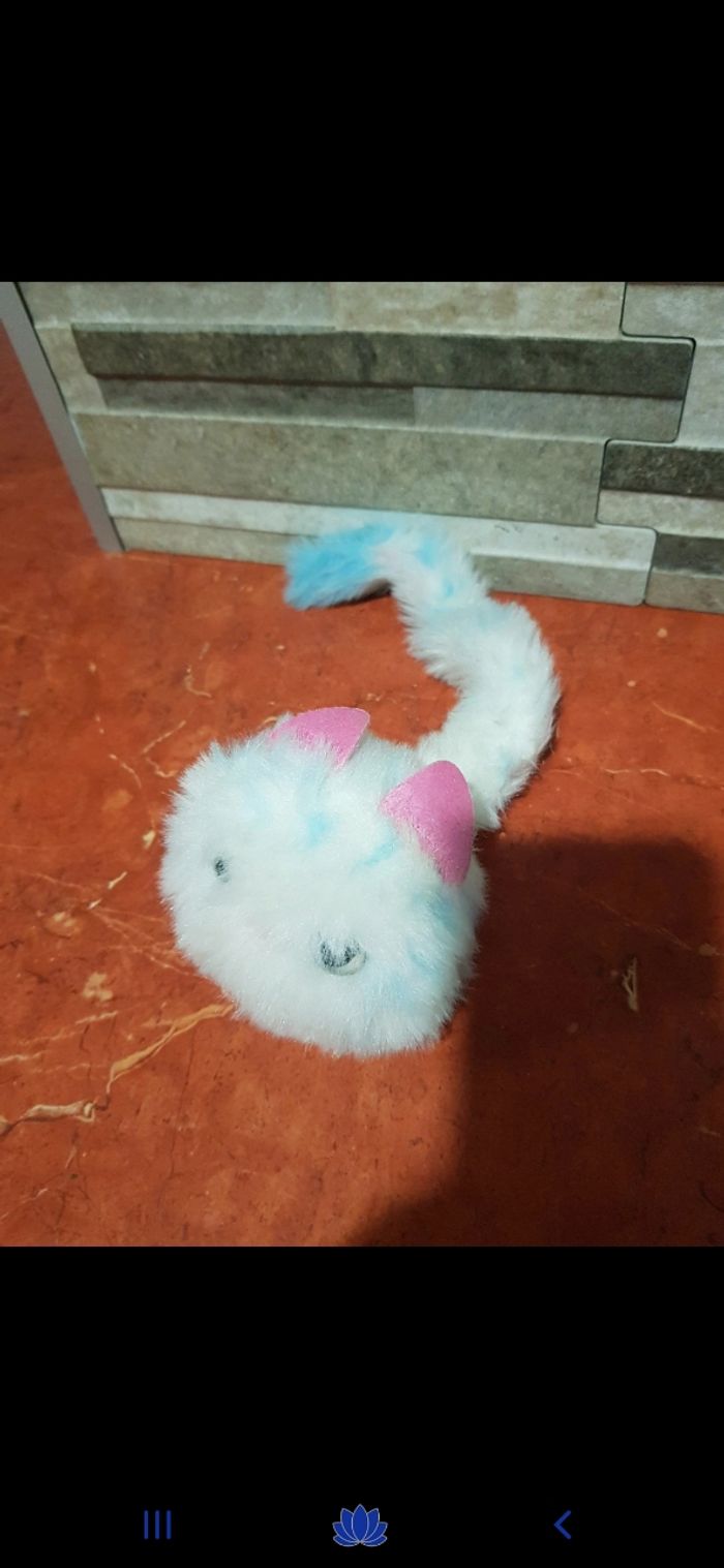Peluche qui quand on lui appuie sur le nez à les yeux qui s allument. Avec sons et vibrations. Un vrai compagnon pour les petits.