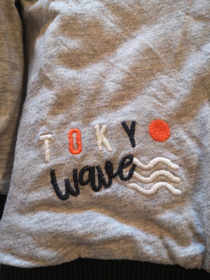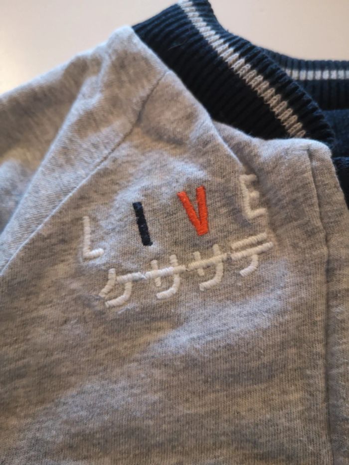 Composé d'un t-shirt manches longues et d'un petit blouson réversible à zip