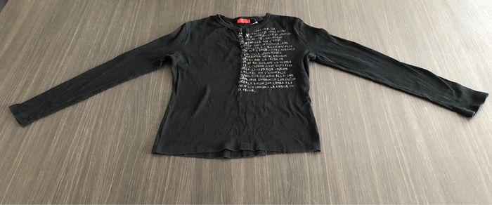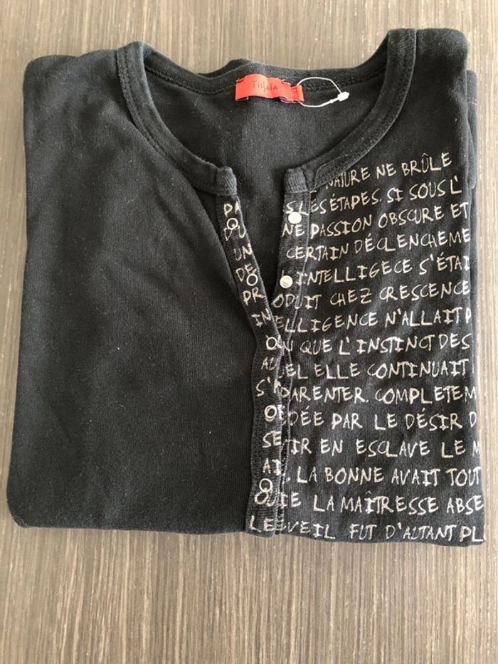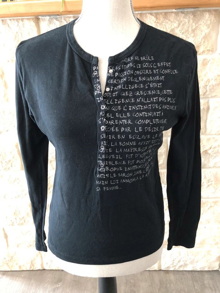 Pull fin marque tissaia taille 42/44 de couleur noir avec inscription argenté , col rond et bouton pression en façade . Neuf jamais porté #pullfinfemme #pullfinfemme4244 #pullfemme #tissaia #neufsansétiquette