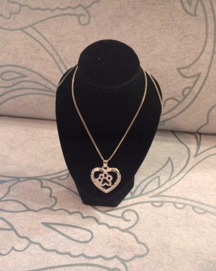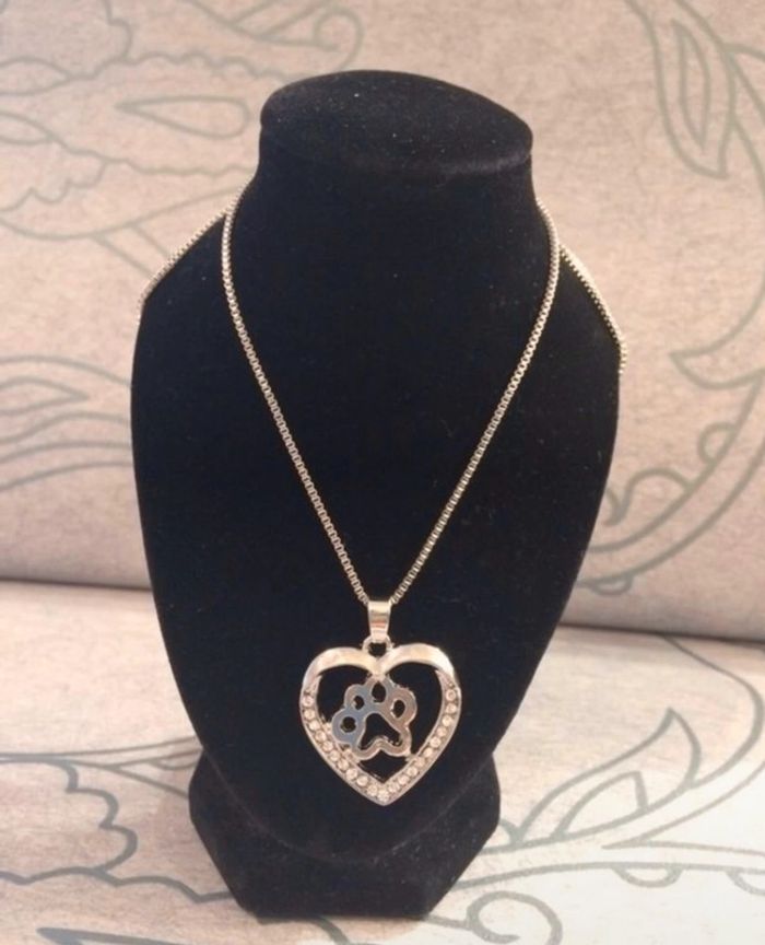 jolie collier pat patrouille en forme de cœur empreinte de patte de chien ornée de strass. Sans licence. Jamais porté Paw patrol #vintedgift