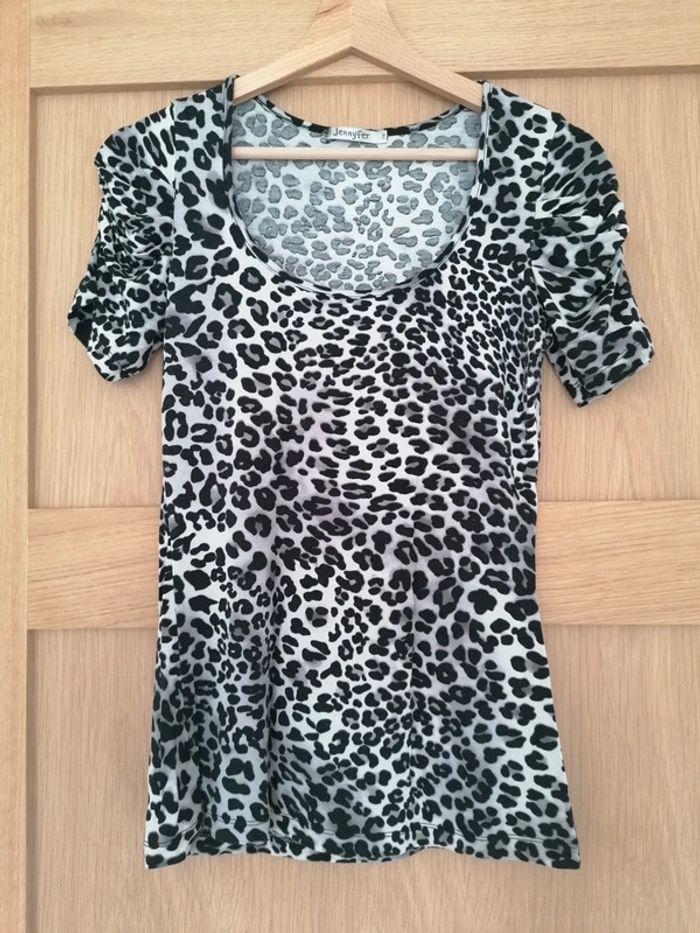 T-shirt manches courtes imprimé léopard. Tissu tout doux et épais. Fronces au épaules. Très peu porté, état neuf. Jennyfer taille M #hanna9889femme #hanna9889femmeM #hanna9889femme38
