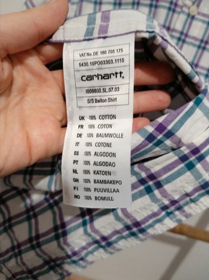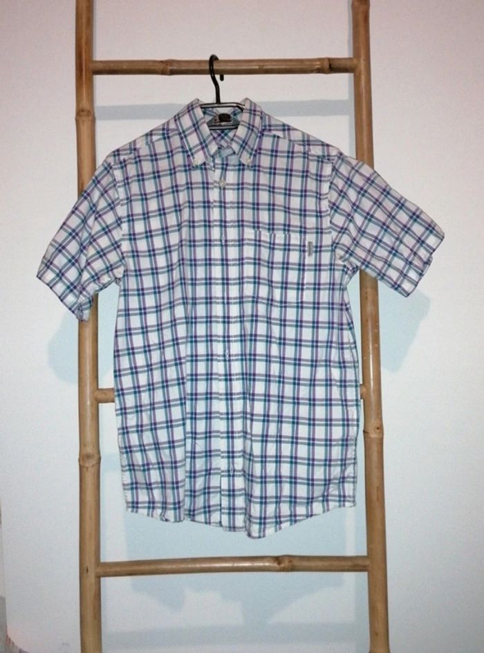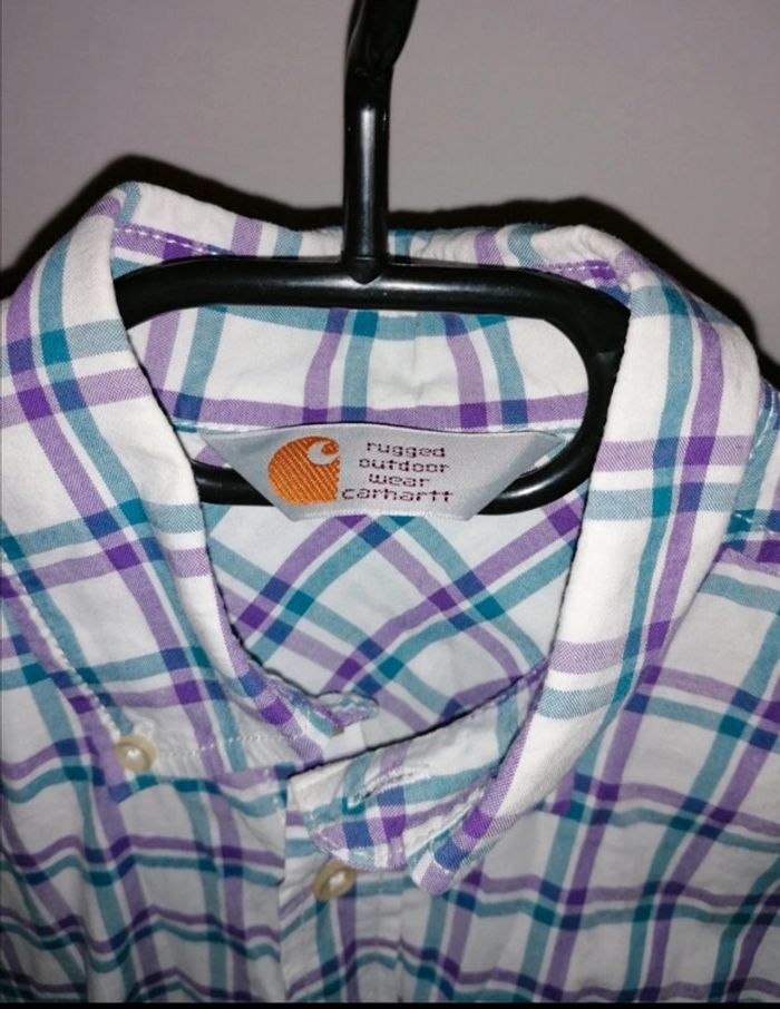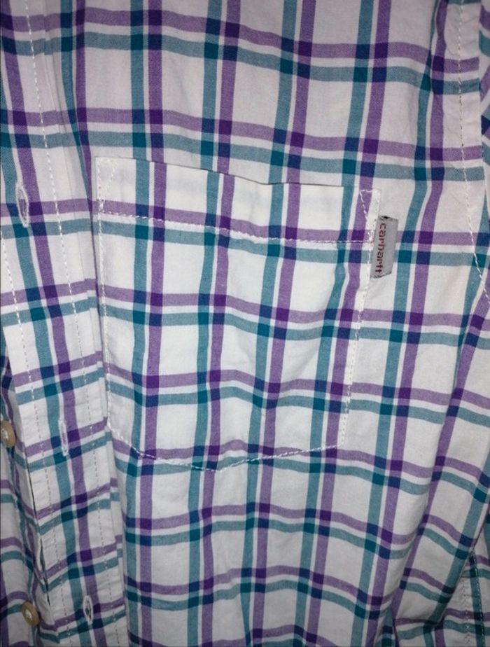 Chemise MC à carreaux. Bleu et violet sur fond blanc. État neuf. Carhartt S #hanna9889hommeS