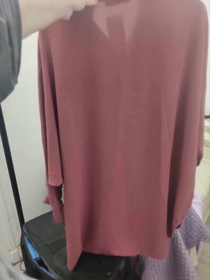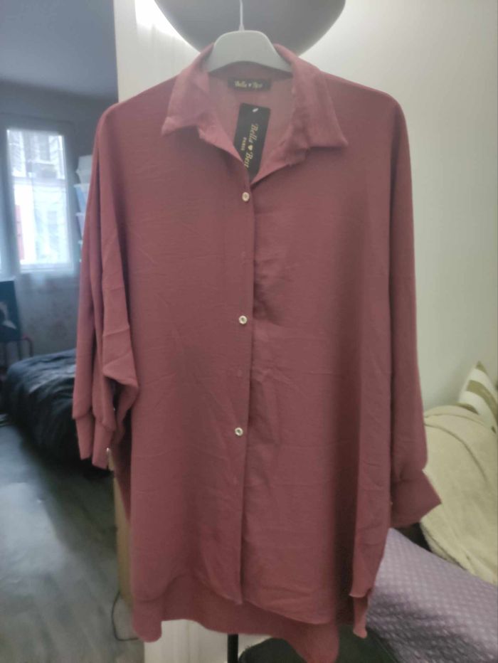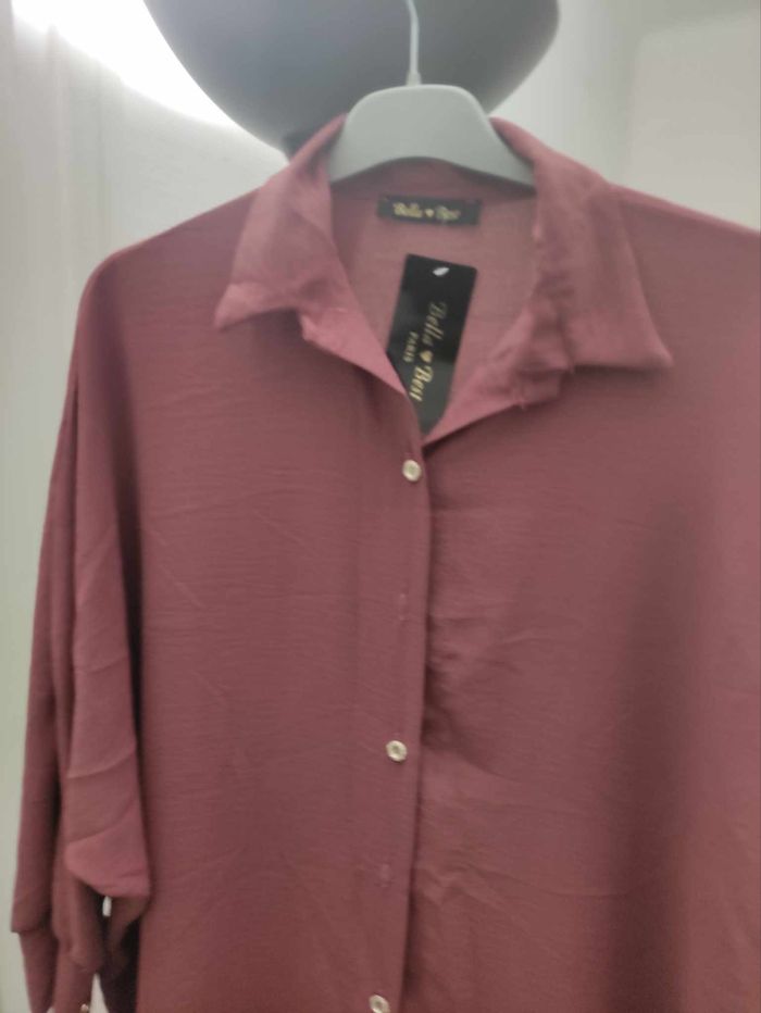 chemise couleur prune bordeaux manches longues Jolis boutons dorés taille unique grande taille 44 à 52 voire petit 54 95% polyester 5% élasthane marque Bella Best
