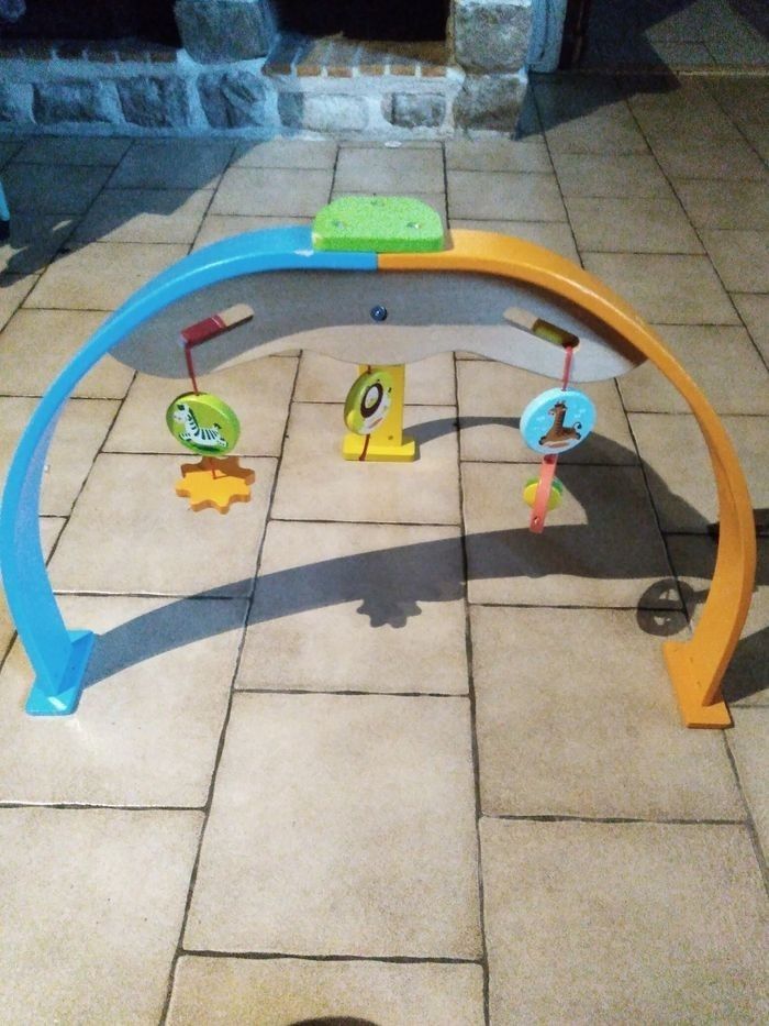 Arche en bois un peu habimer sur le haut rien de méchant et manque un bout de jouet mais ne gêne en rien