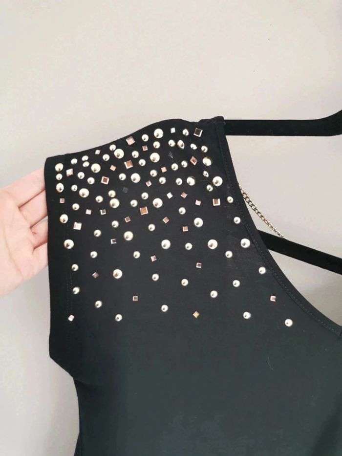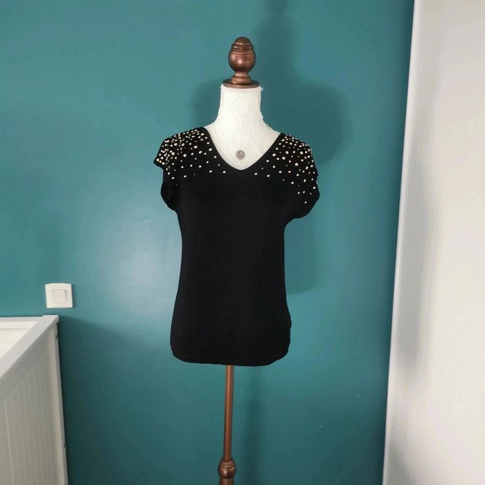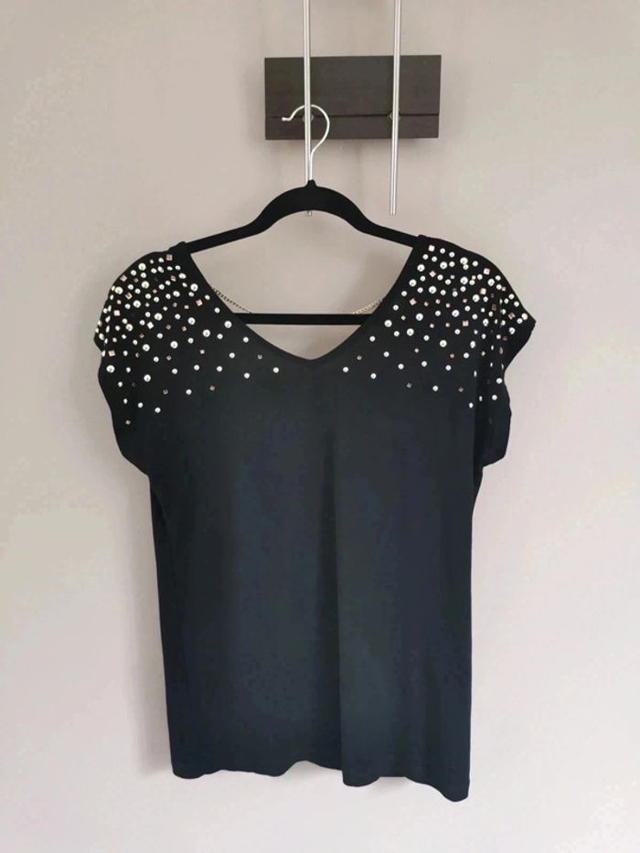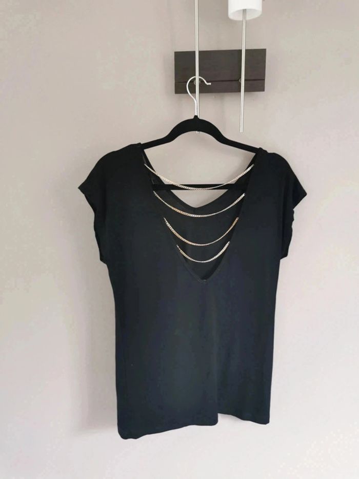 Haut noir avec strass sur les épaules et chaînettes au dos taille S de la marque Mim En très bon état 🌺Pour retrouver mes articles pour femmes de la même taille #virginwoodyfemmeS #virginwoodyfemme36 🍀De la même marque #virginwoodymim 👕Mes hauts #virginwoodyhauts #virginwoodyteeshirtsMC
