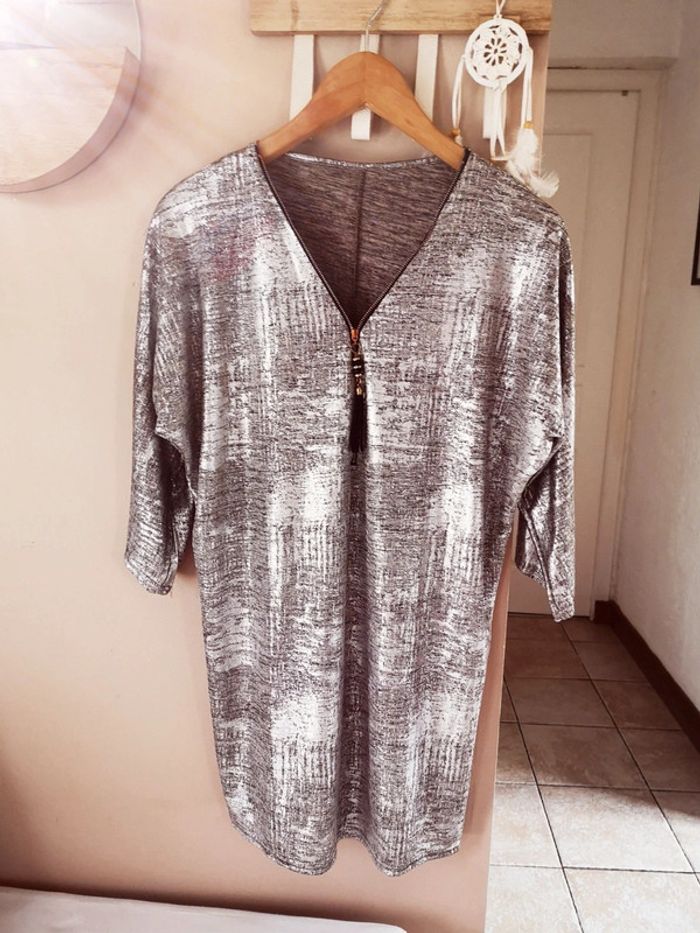 Top haut blouse tunique argenté - photo numéro 1