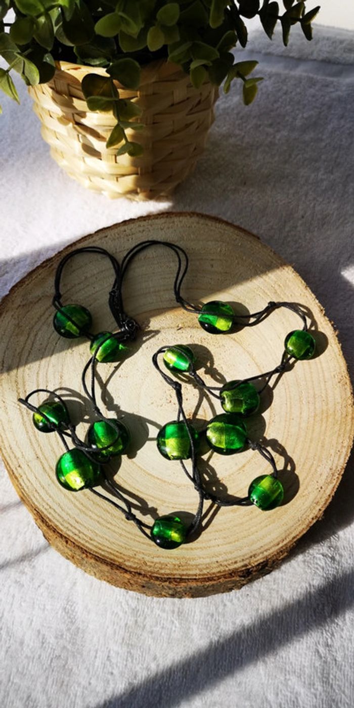 Très jolie collier avec pierres vert et jaune N'hésitez pas à regarder mon dressing d'autres bijoux en vente.