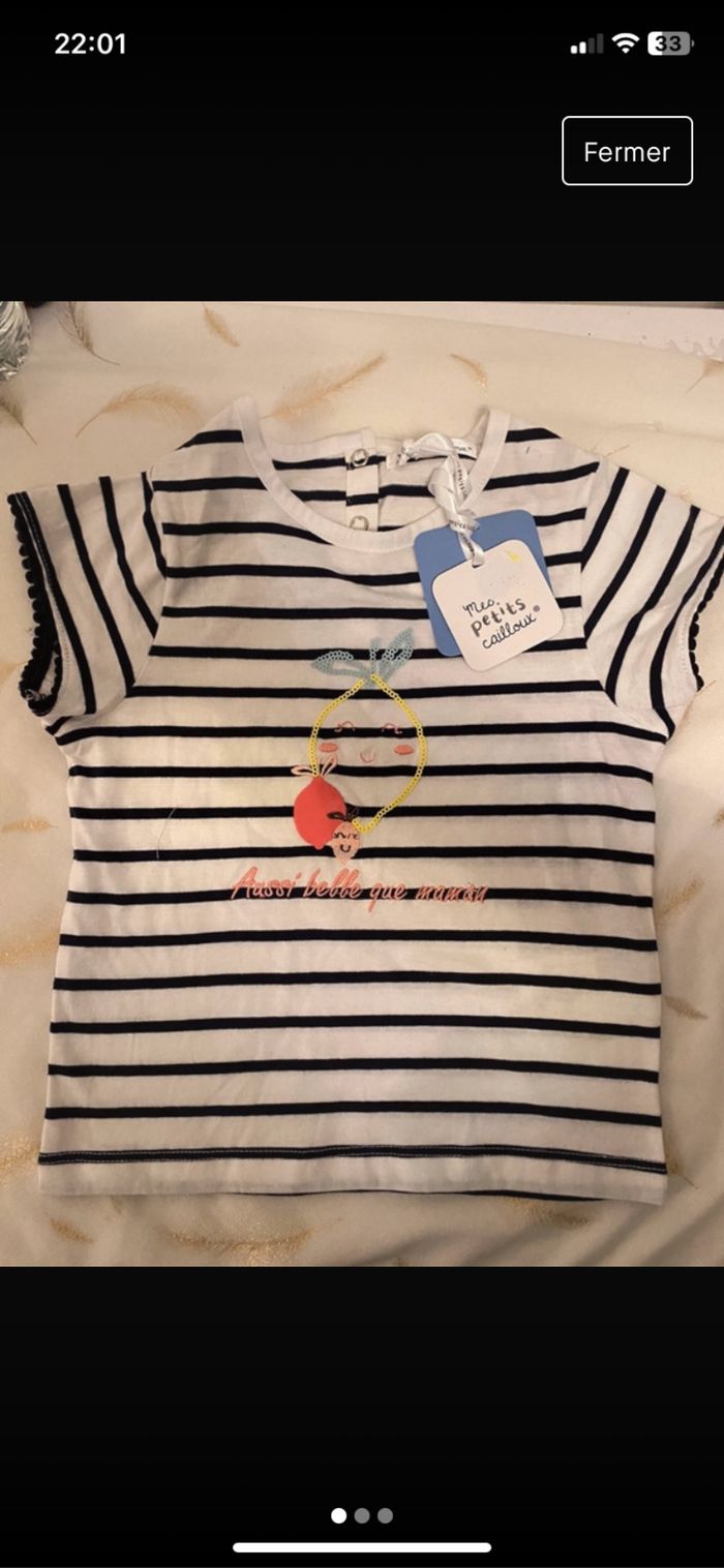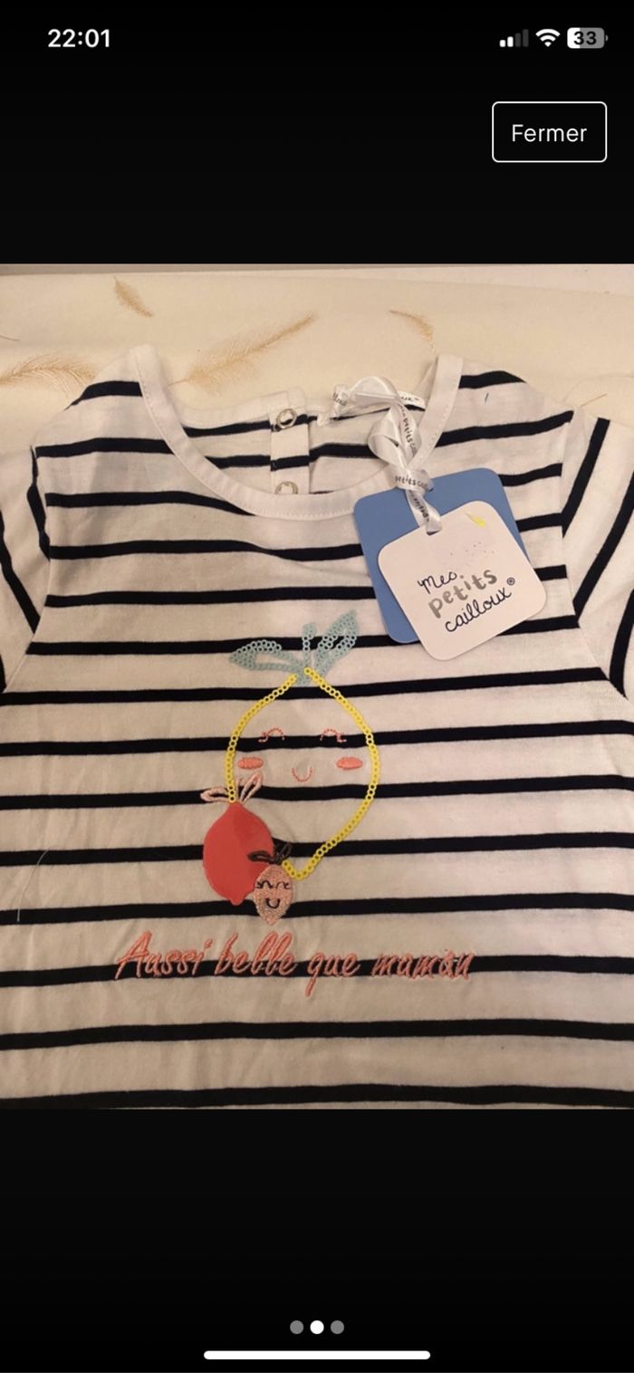 T-shirt rayé fille 36 mois neuf mes petits cailloux
