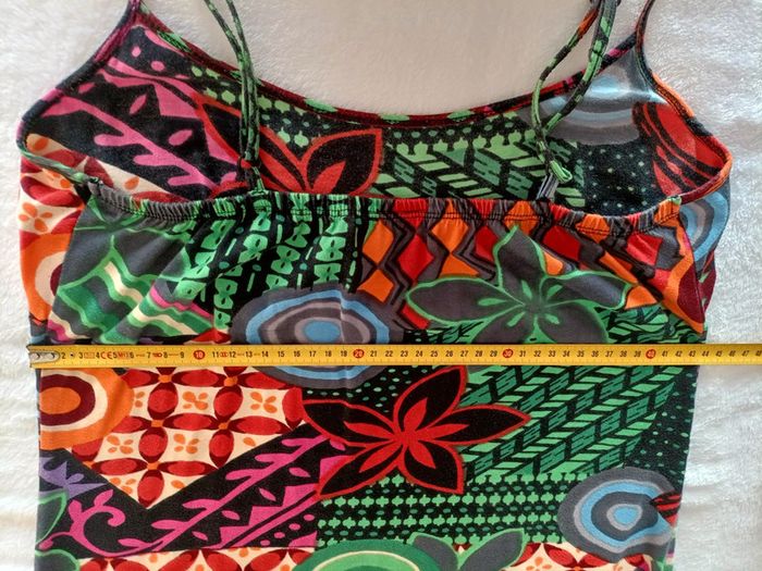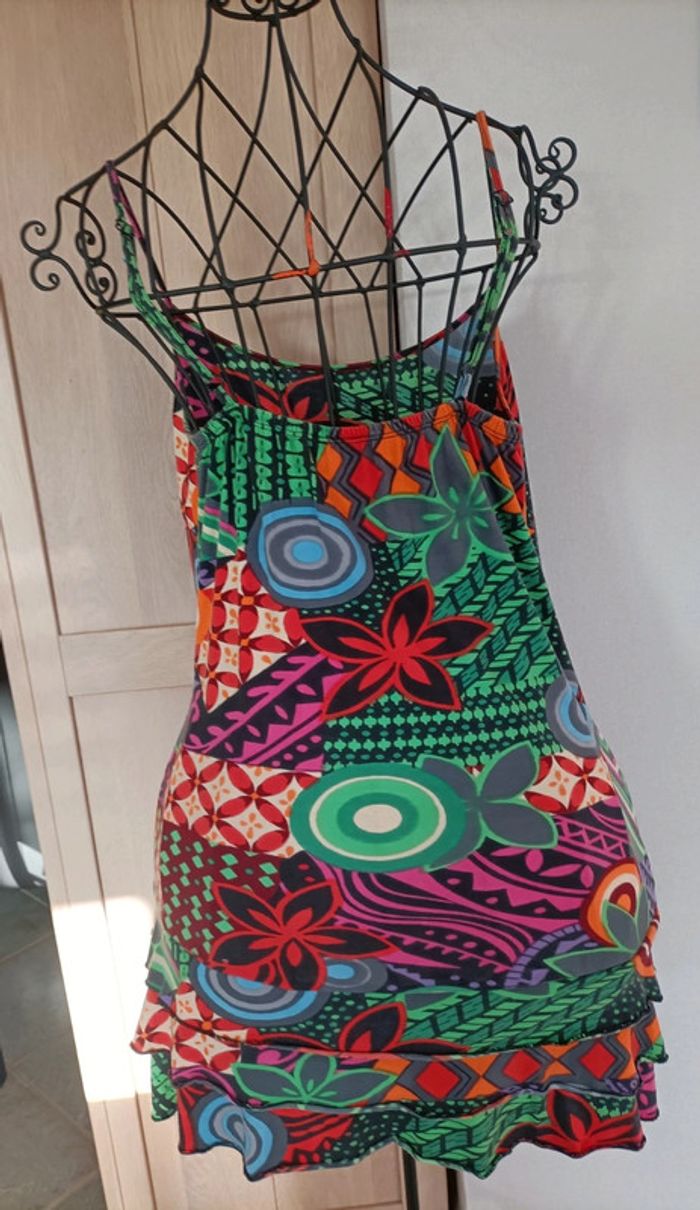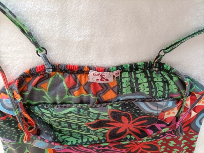 Jolie robe d été acheté en Martinique de la marque Coton du monde en M/L Les couleurs sont légèrement moins Vif que sûr photos mais couleurs pétillantes tout de même bretelles réglables voir photos n hésiter pas pour d autres renseignements. Cordialement