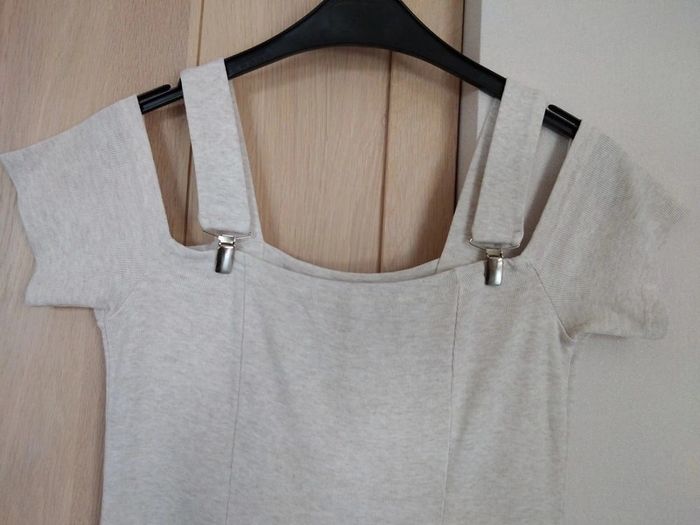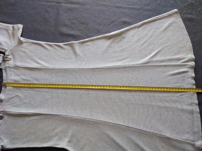 Robe crème ou couleur craie qualité très agréable à porter noté un 40 mais voir photos les mensurations. Pour moi peu être porté en robe ou bien comme tunique aussi un peu évasé dans le bas peu faire en lot dans mon dressing. N hésitez pas pour d autre renseignement. Cordialement