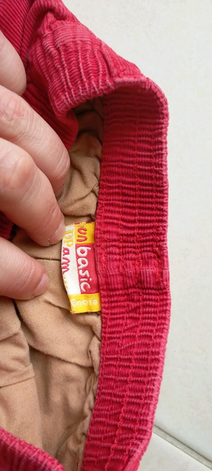 Pantalon en simili velour rouge de taille 6 mois. Marque : DPAM Très bon état, très peu porté