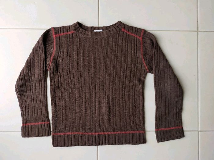 Pull marron col rond 100% acrylique Taille 6 ans