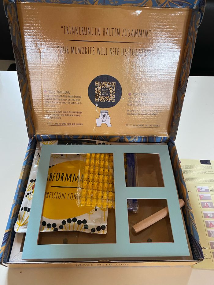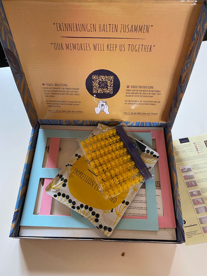 Kit complet pour emprunte d’enfant, facile et pratique. Je n’ai jamais ouvert la boîte, elle est neuve.