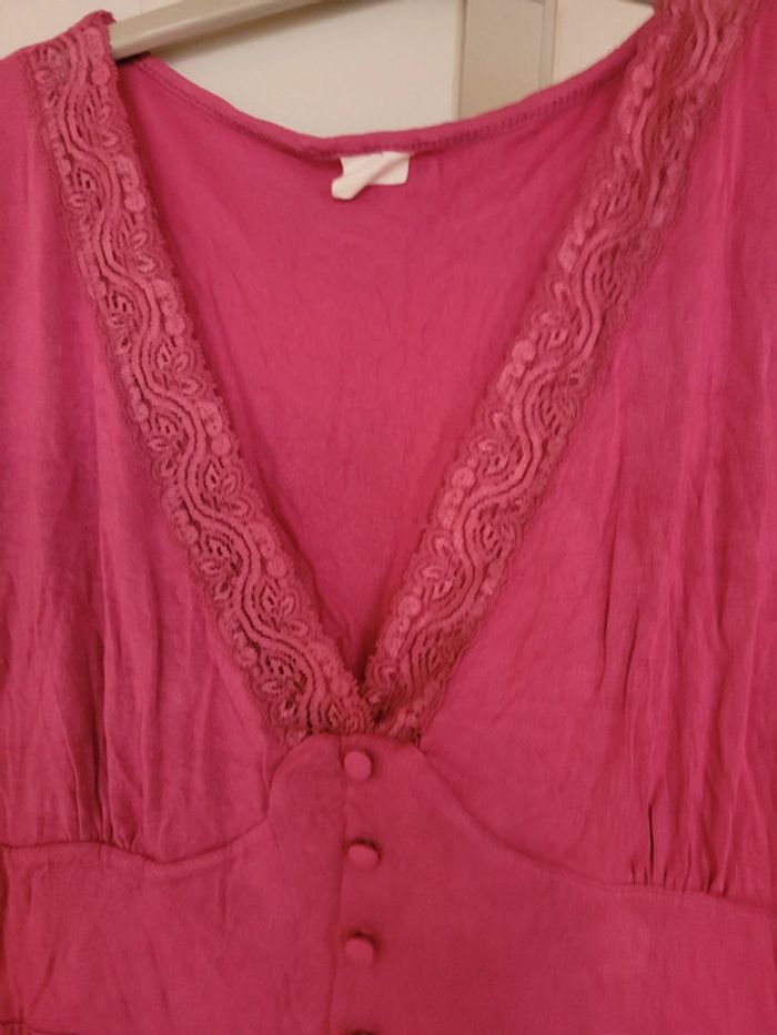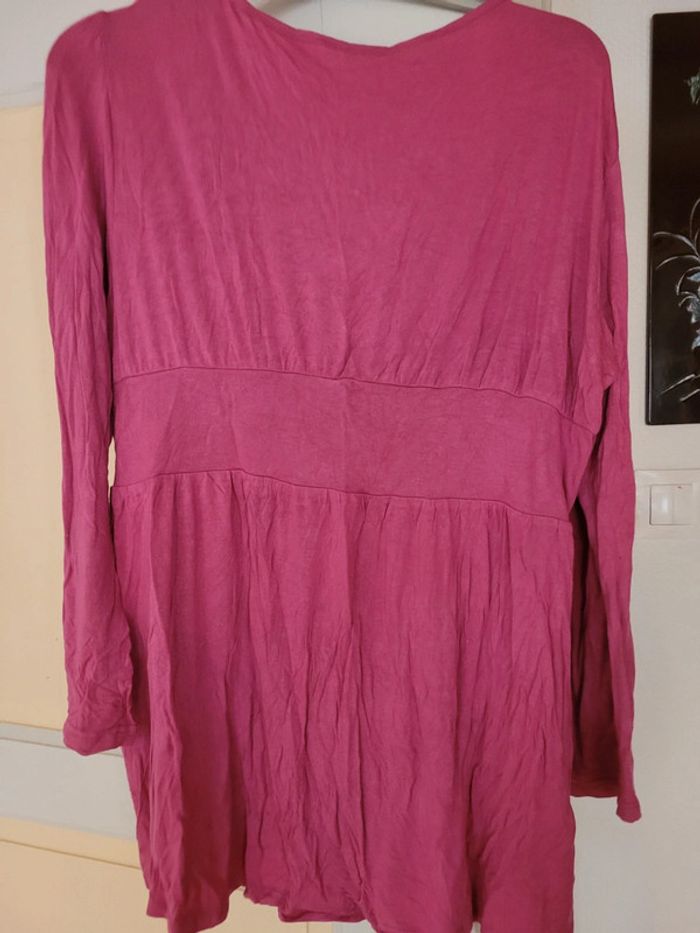 Manches longues Encolure en V, terminée par une bande en dentelle Taille marquée S'evase à partir de la taille, 68 cm x2 à la base 51 cm aisselle à aisselle