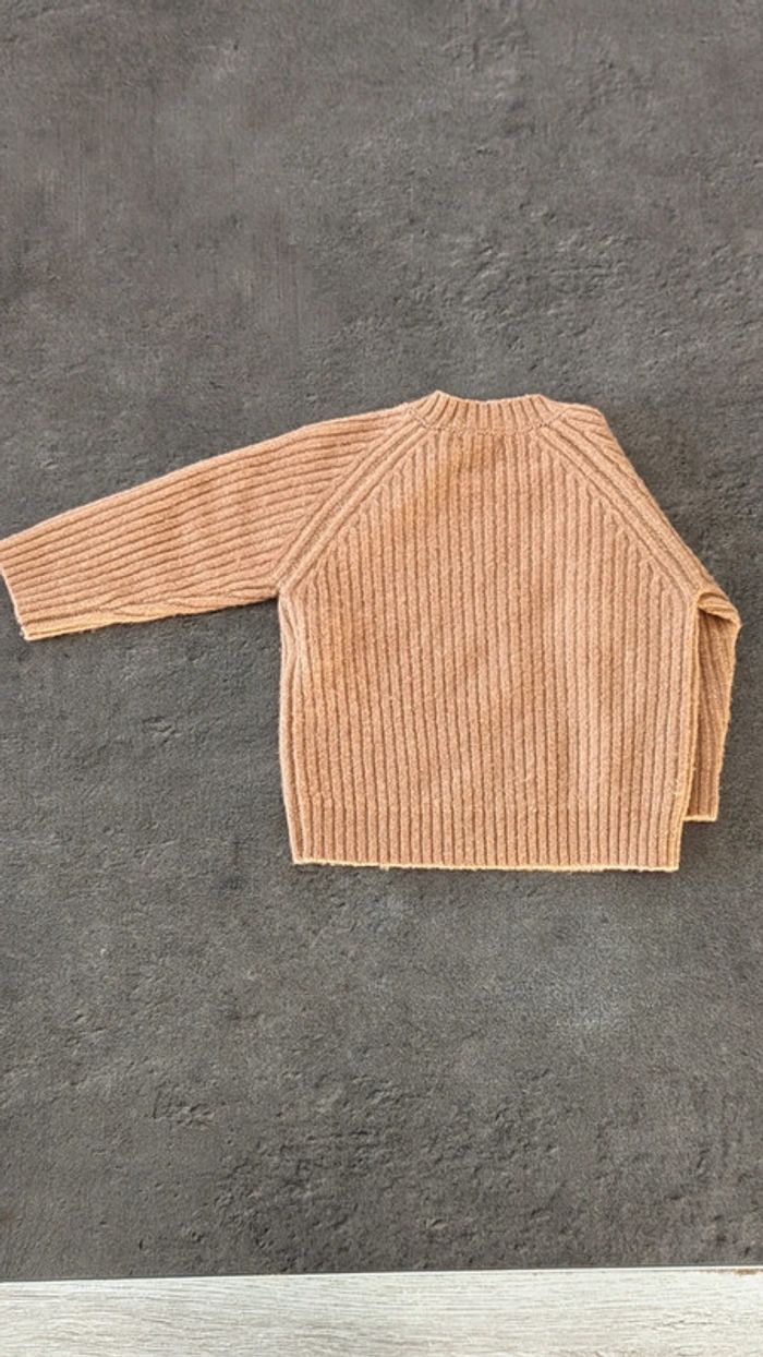 Pull chaud Kiabi manche longue 67% acrylique 30% polyester avec ouverture au niveau de l'épaule via boutons. Achat neuf. Peu porté mais tissu qui s'effiloche un peu sur les bords.