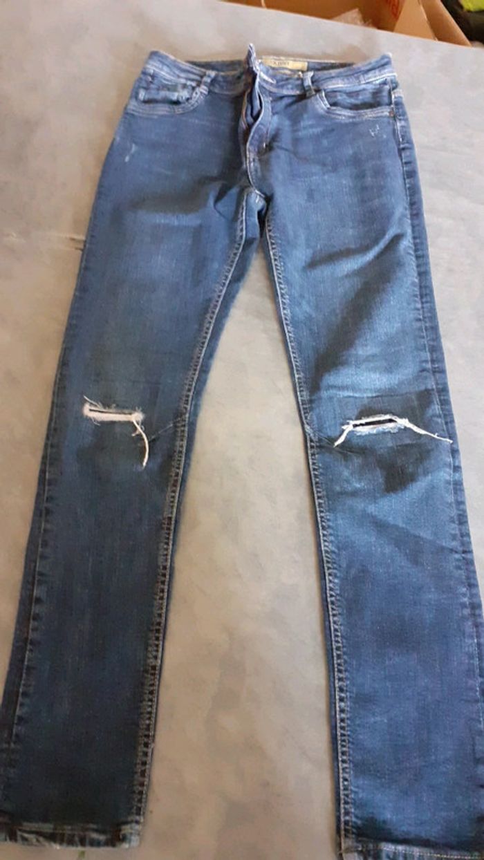 Effet usé..pas de trou au genou car empiècements d origine ..taille 13 14 ans