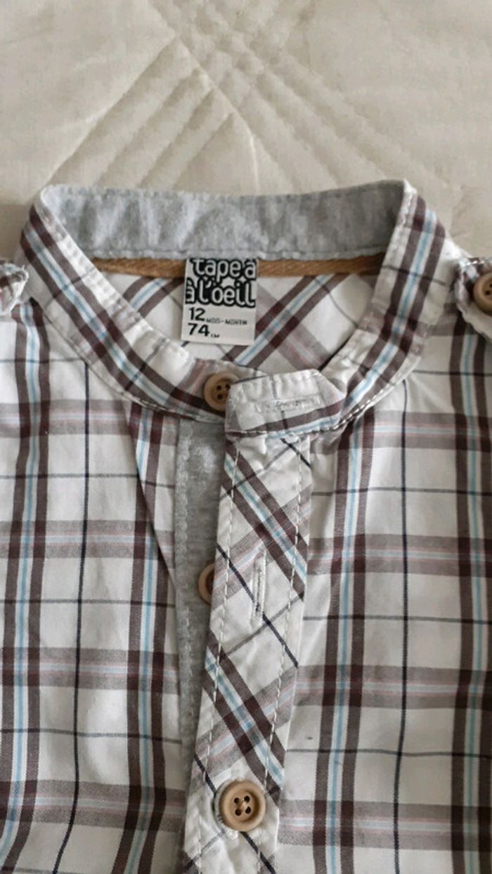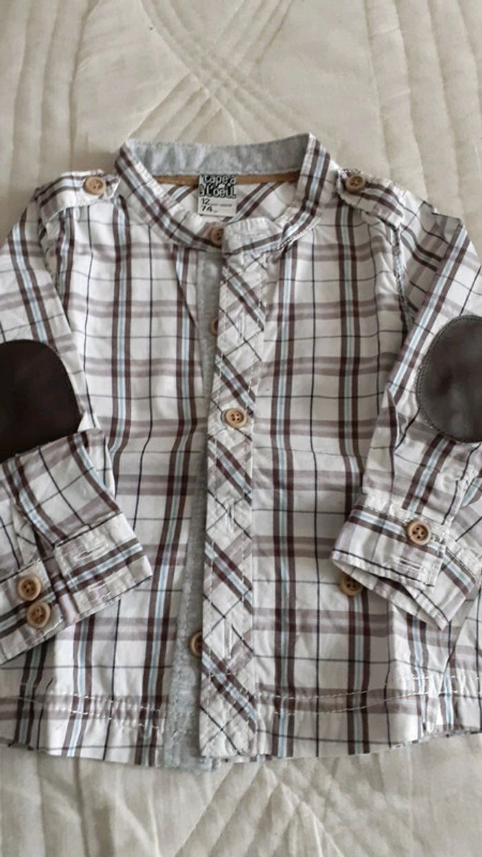 A carreaux..empiècements coudes..12 mois