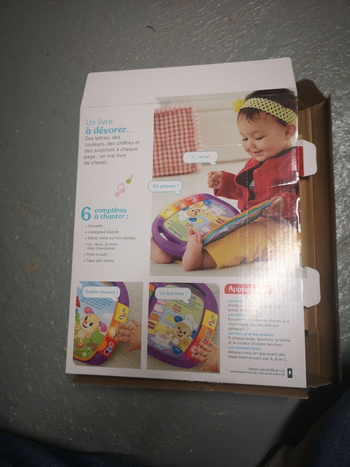 Livre interactif avec des comptines pour enfant J'ai toujours la boîte d'origine mais il fait ajouter des attachés ( rilsan /serre câble) si vous voulez l'offrir