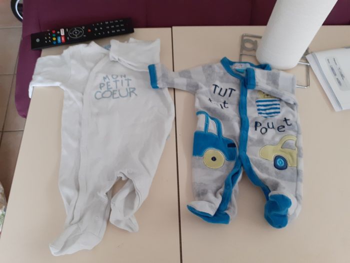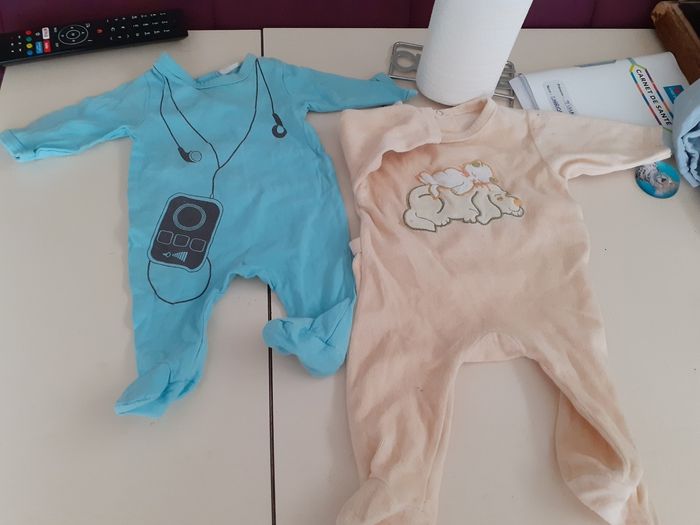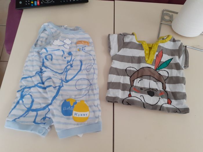 Malheureusement je ne peut mettre que ça en photo mes si non j'ai deux énorme sac caba avec du 1 mois et quelques 3 mois été et un peut hiver je fait tout pour 10 euro. On a des Short, pantacour Jeans, jogging Haut manche longue, cour Pull,chemise Body, pyjama Salopette, combi Une paire de chaussur oui oui Etc..