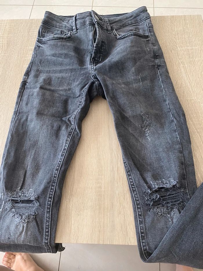 Jean déchiré aux genoux marqué taille 38 mais taille très petit, je le mettais quand je faisais du 34. #melanie_mamis_femme_taille34