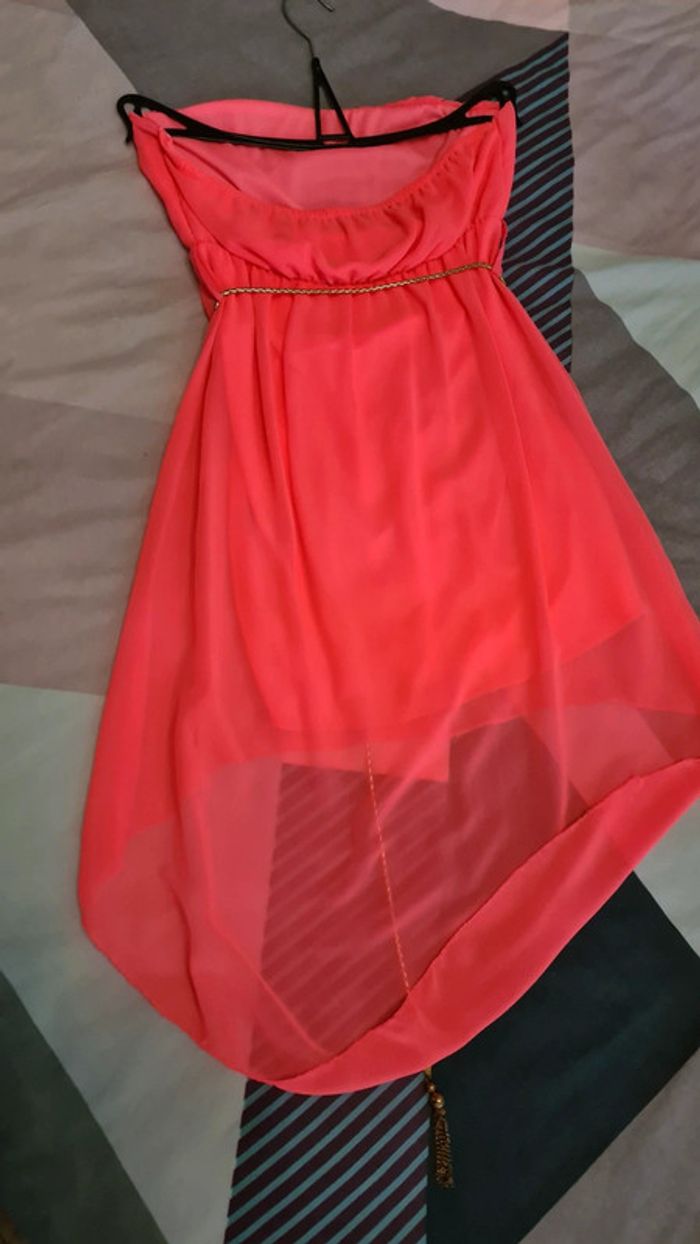 Robe courte asymétrique bandeau corail - photo numéro 2