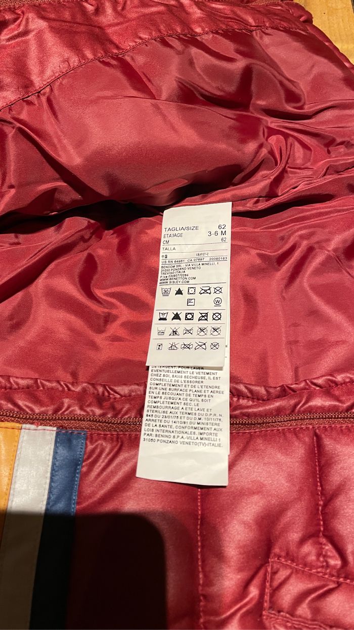 Blouson bordeaux imperméable pour bébé Taille 3 - 6 mois Marque United Colors of Benetton État neuf
