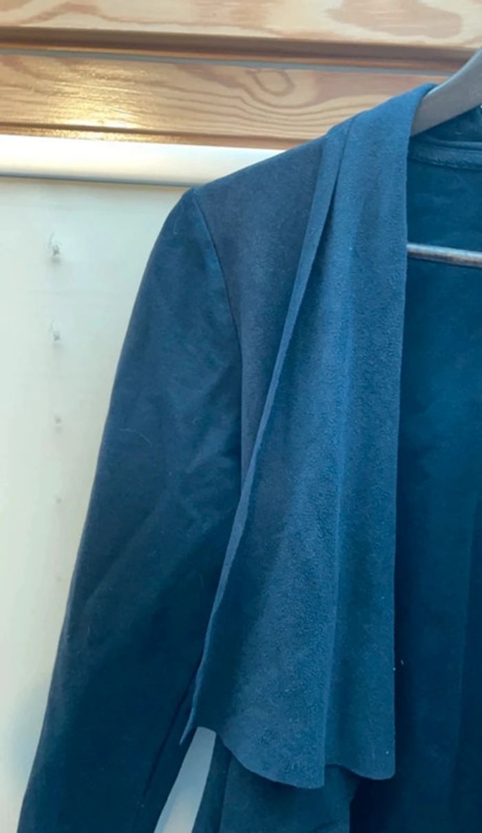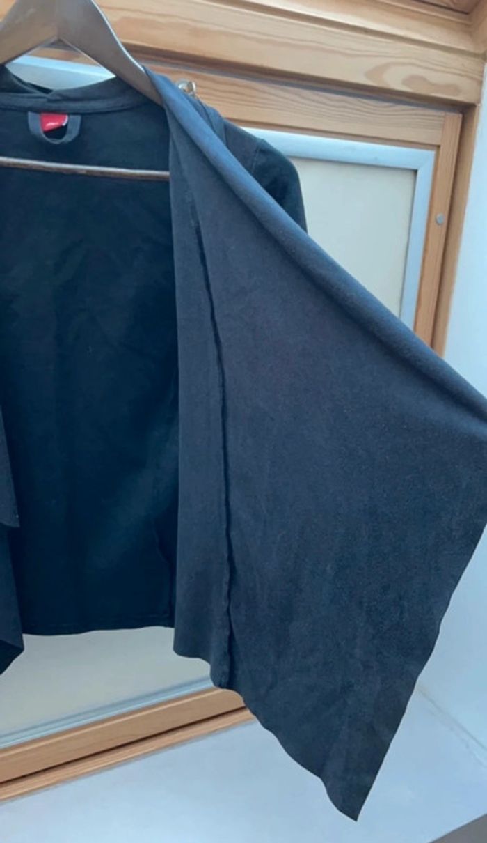 Veste noire à manches longues avec parement col et bordures asymétriques Tissu doux effet suédine CLR
