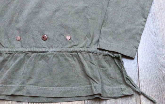 Tee-shirt en coton épais à manches longues vert kaki à petites broderies Serré à la taille par un cordon