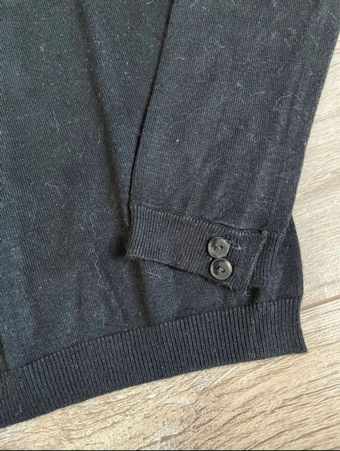 pull noir en coton doux avec boutons fantaisie au col et bas des manches