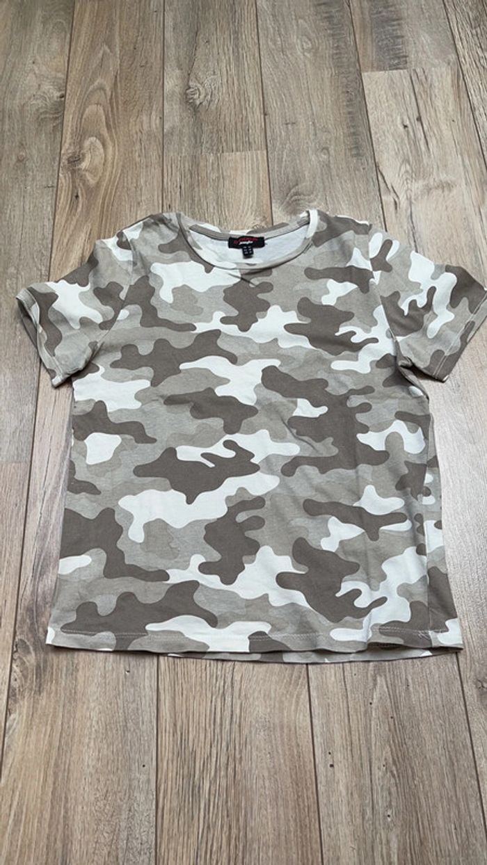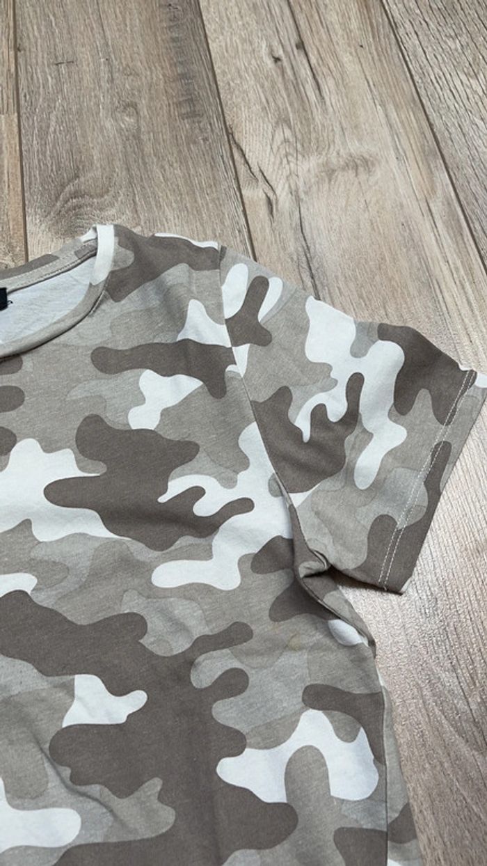 Tee-shirt à manches courtes motifs camouflage beige, marron et taupe CH