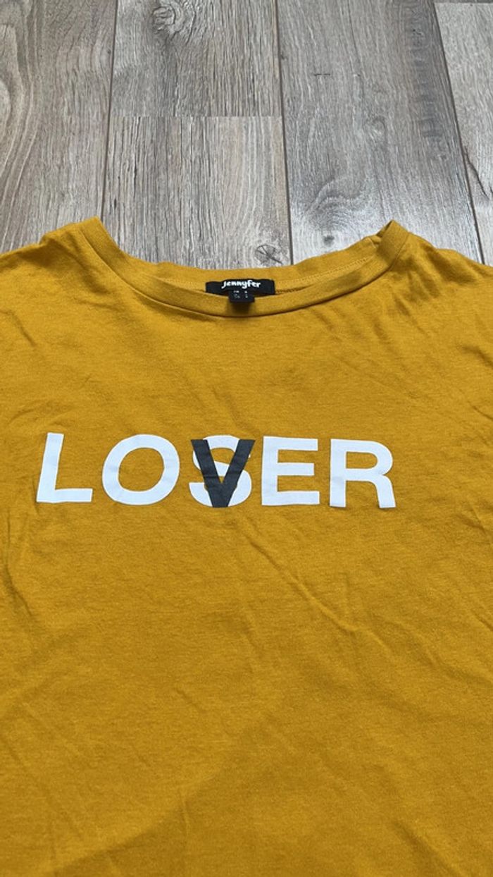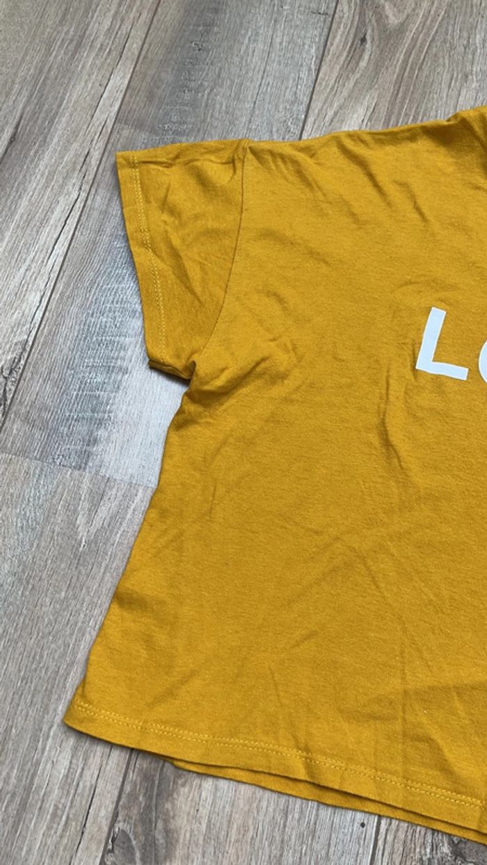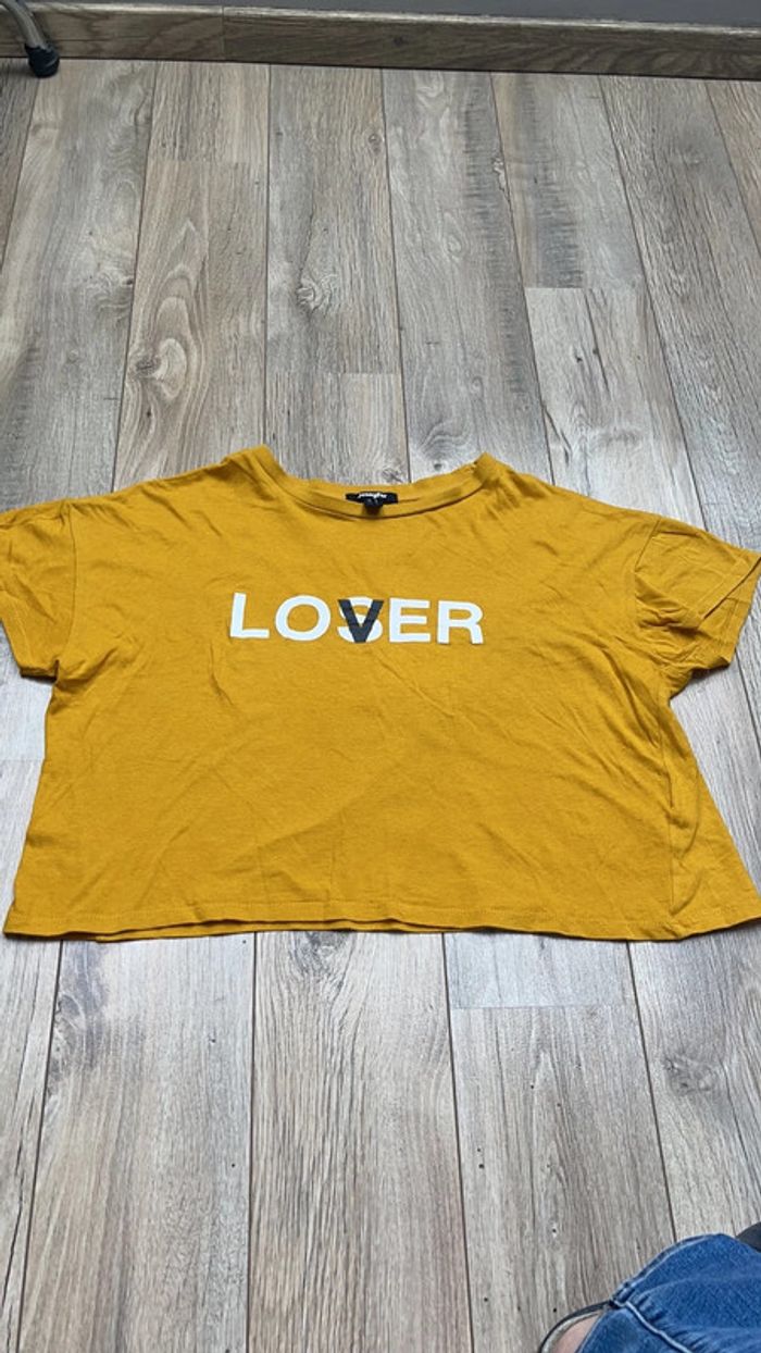 Tee-shirt couleur jaune moutarde à manches courtes, longueur 3/4 très bon état CH