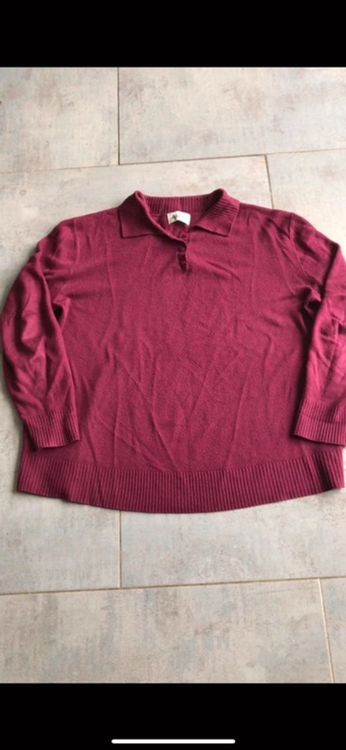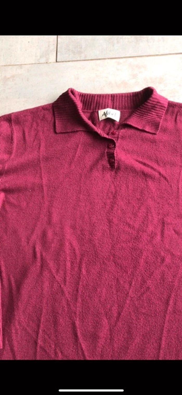 Pull couleur Lie de vin presque framboise en laine à petit col chemise et manches longues Entretien facile en machine
