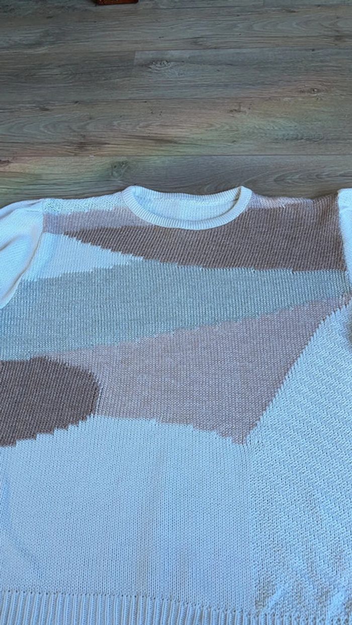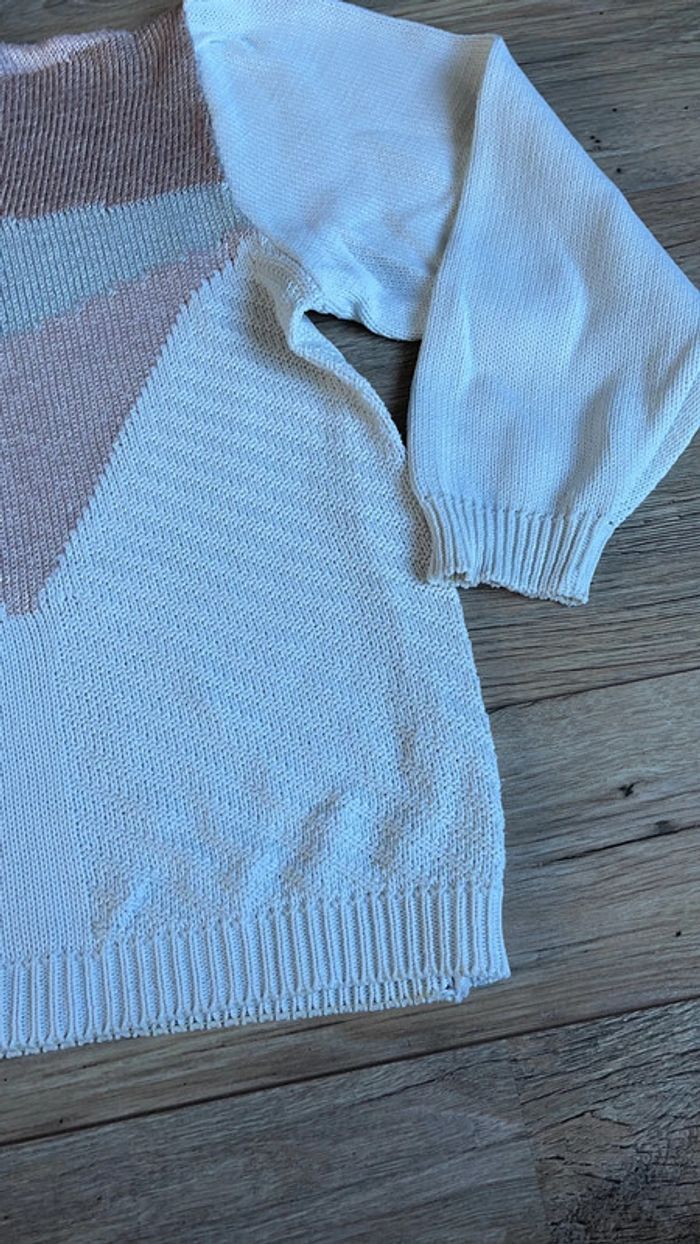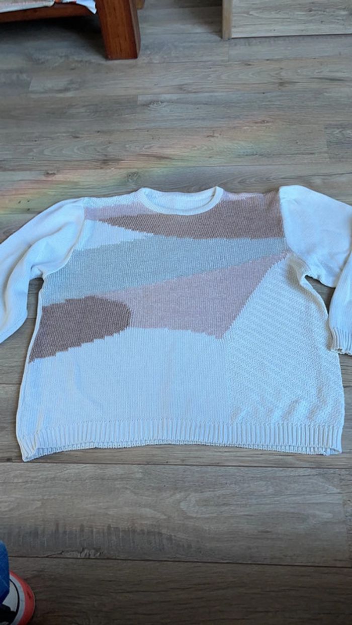 pull à manches longues acrylique et coton Blanc avec motifs asymétriques gris clair et rose Entretien facile