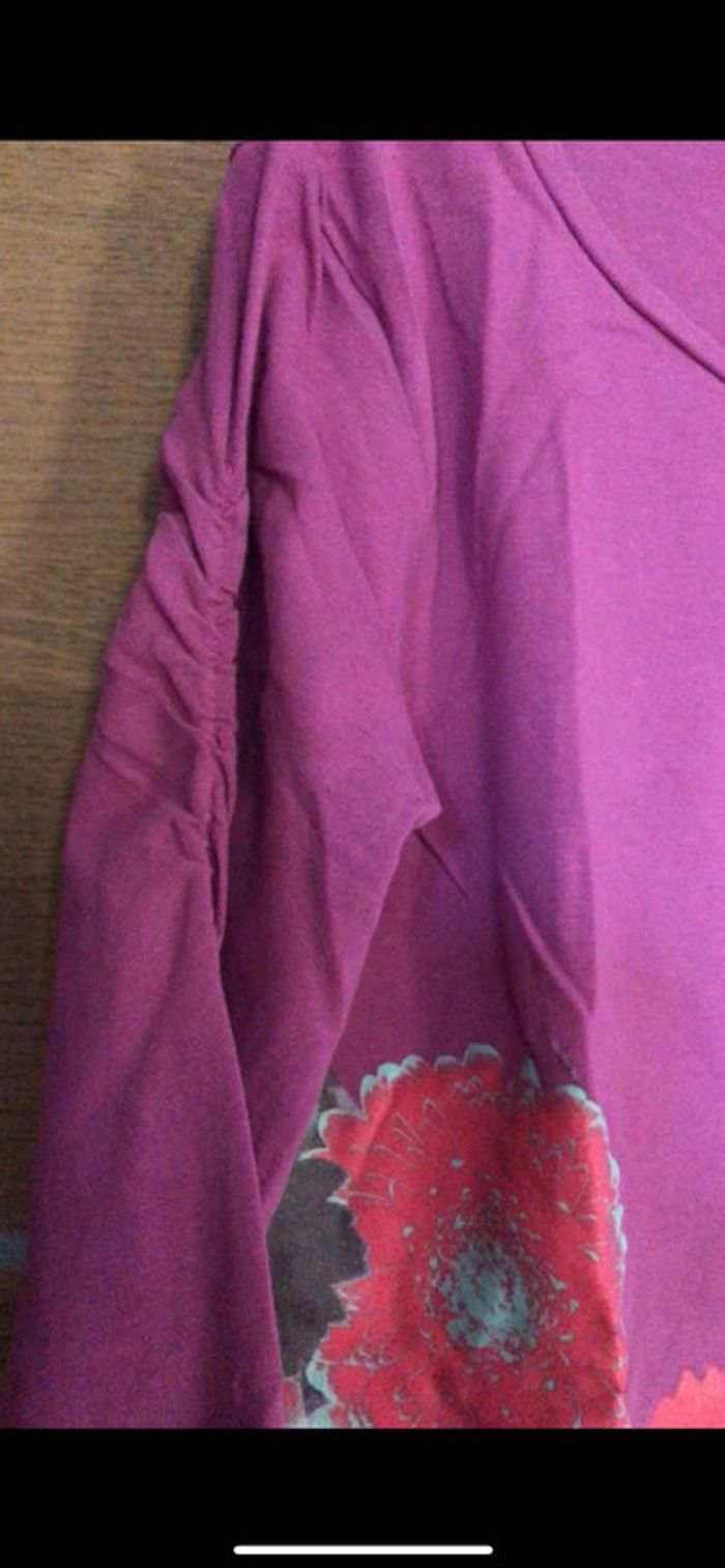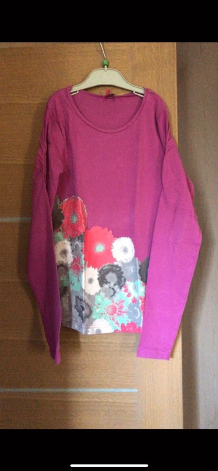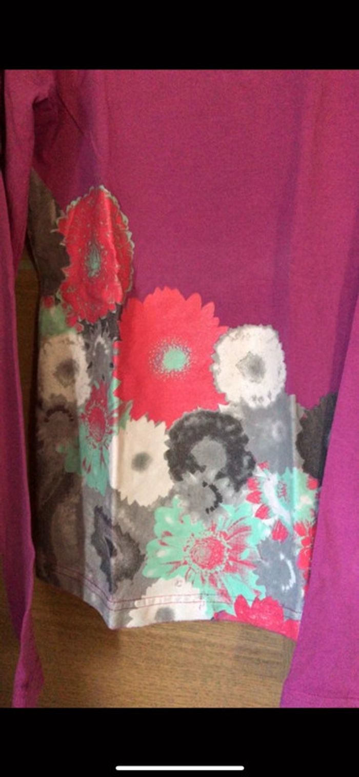 Tee-shirt manches longues Orchestra en coton couleur fushia motifs fleurs - dos uni En excellent état