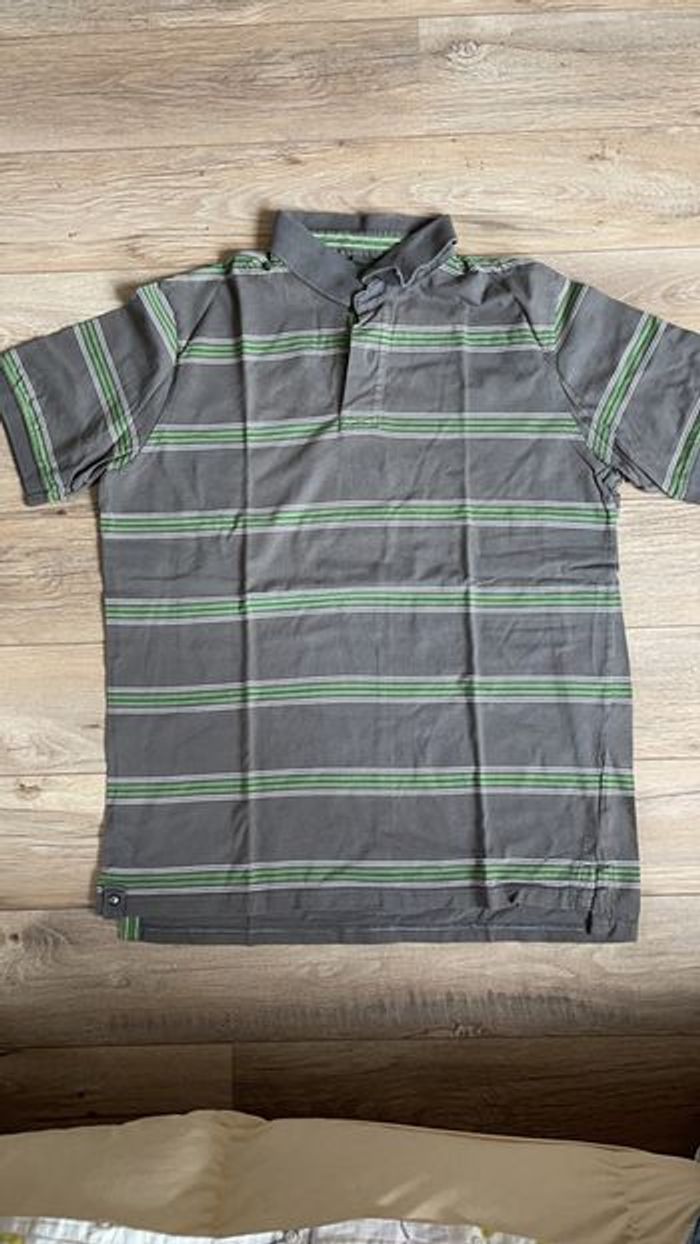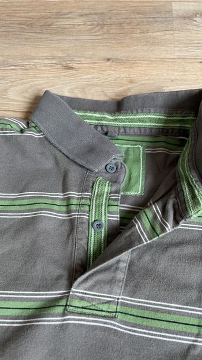 Polo col chemise à manches courtes couleur gris souris à rayures blanches et vertes BU